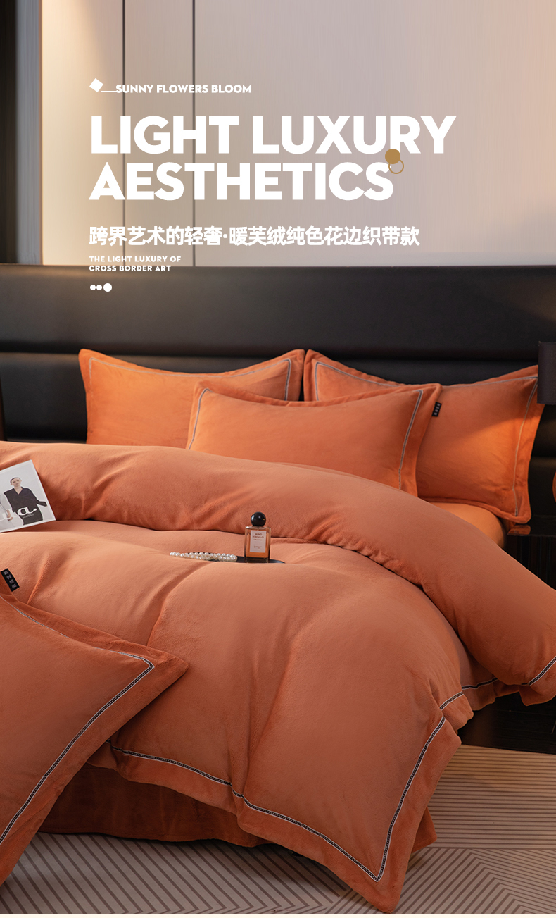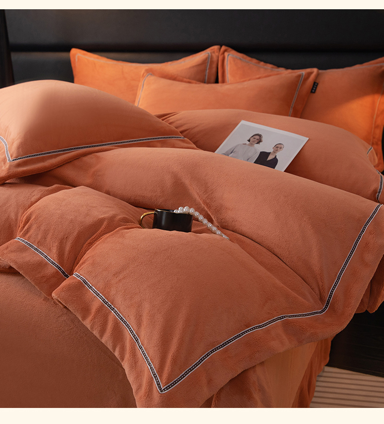 当前位置: 91家纺网 > 商品网购 > 床品套件 > 四件套 > 牛奶绒四件套 > 暖洋 2025新款240克高克重全工艺纯色织带花边款牛奶绒四件套 枫糖橙