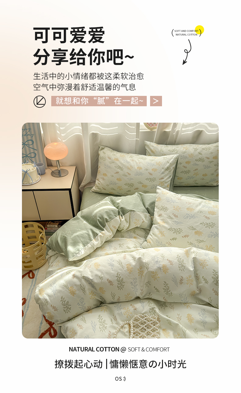 当前位置: 91家纺网 > 商品网购 > 床品套件 > 四件套 > 全棉普通四件套 > 小叮当家纺仓储工厂店 2025新款13372碎花系列全棉纯棉印花四件套 萱草