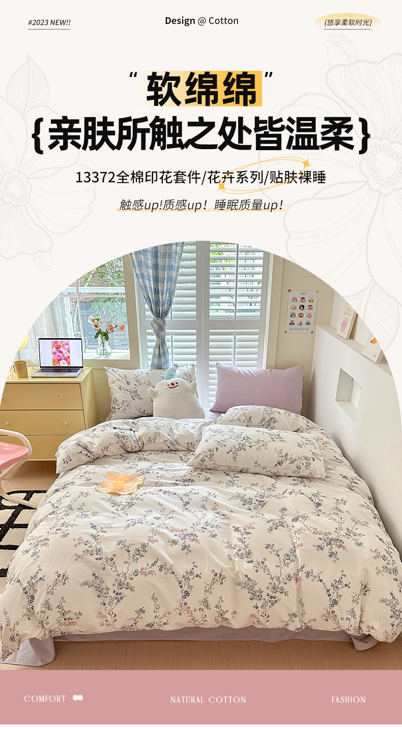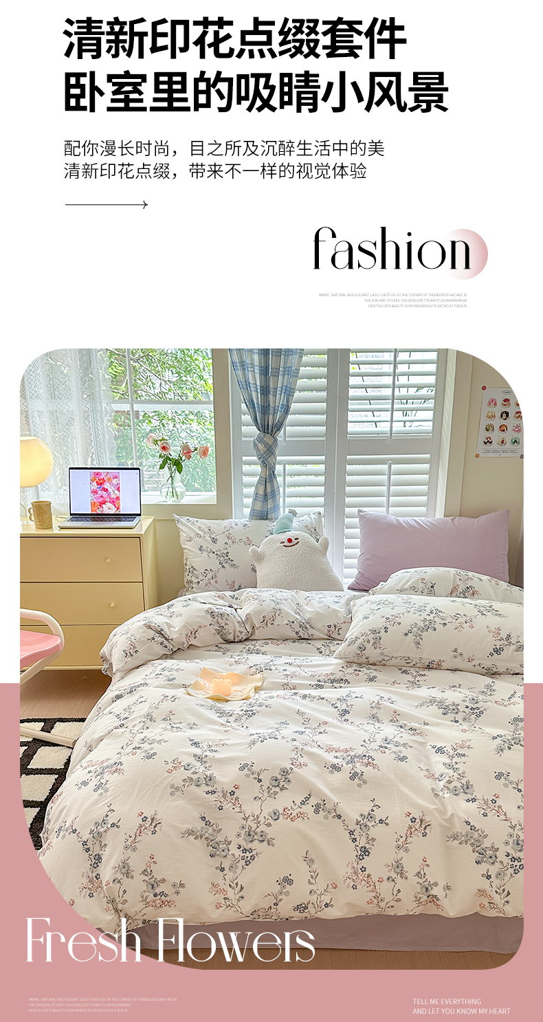 当前位置: 91家纺网 > 商品网购 > 床品套件 > 四件套 > 全棉普通四件套 > 小叮当家纺仓储工厂店 2025新款13372碎花系列全棉纯棉印花四件套 暗香