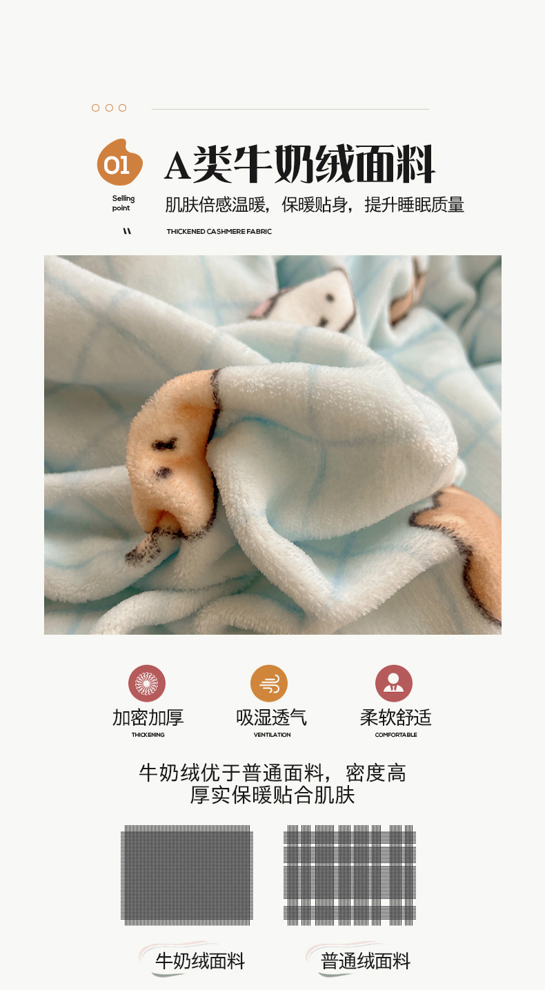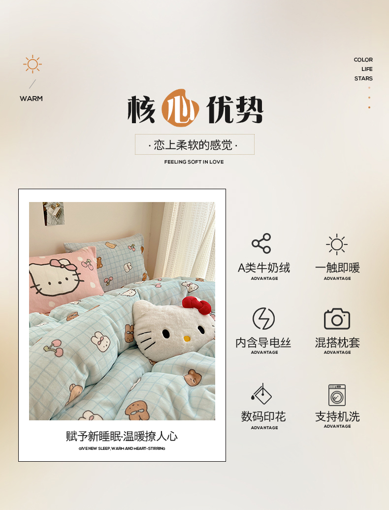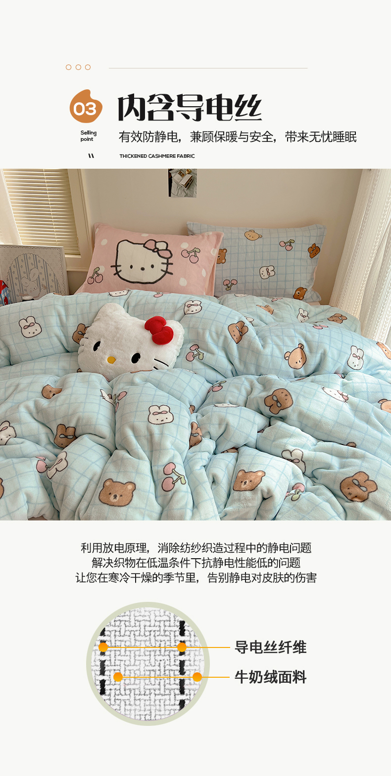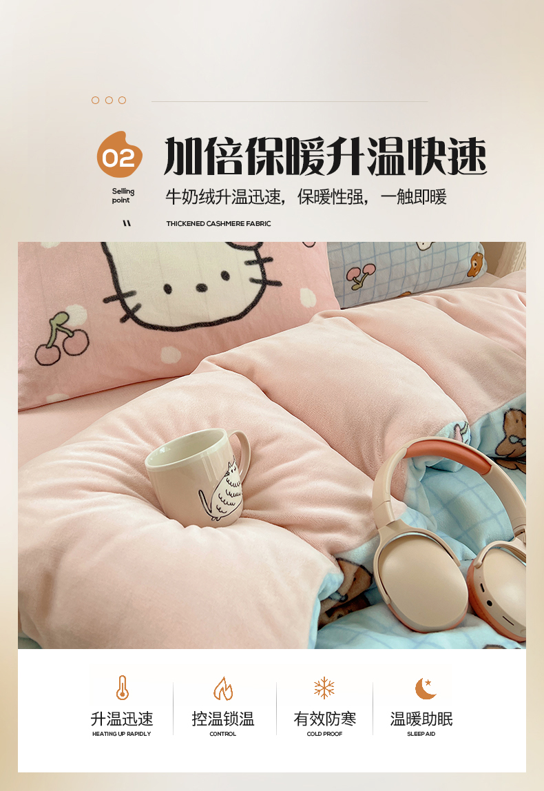 桃子家居 2025新款A类ins数码印花枕混搭小清新少女卡通猫咪加厚牛奶系列四件套 绒-混搭樱桃熊兔