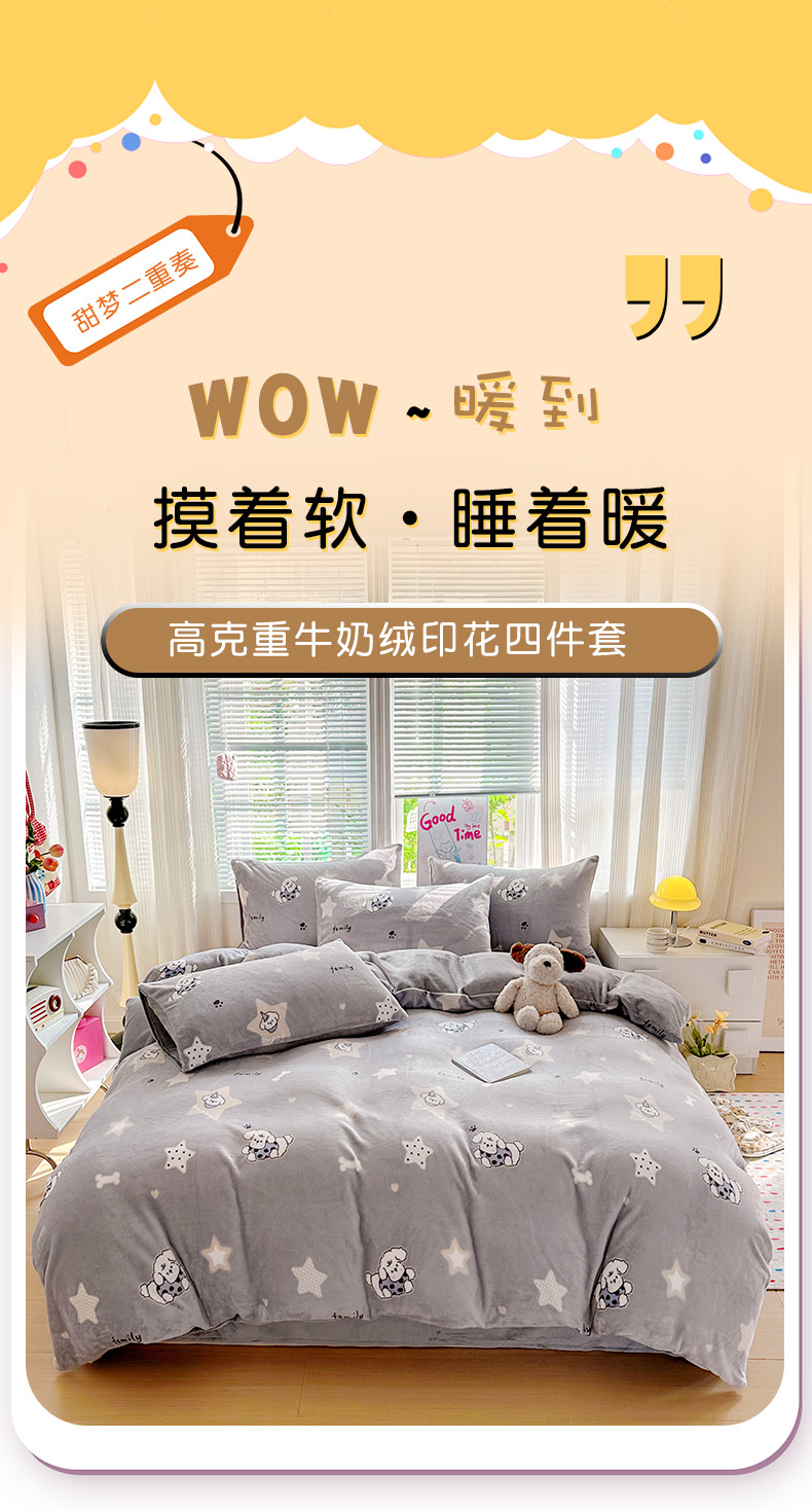 当前位置: 91家纺网 > 商品网购 > 床品套件 > 四件套 > 牛奶绒四件套 > 西引力 2025新款亲肤舒适加厚牛奶绒印花四件套 星际宝贝
