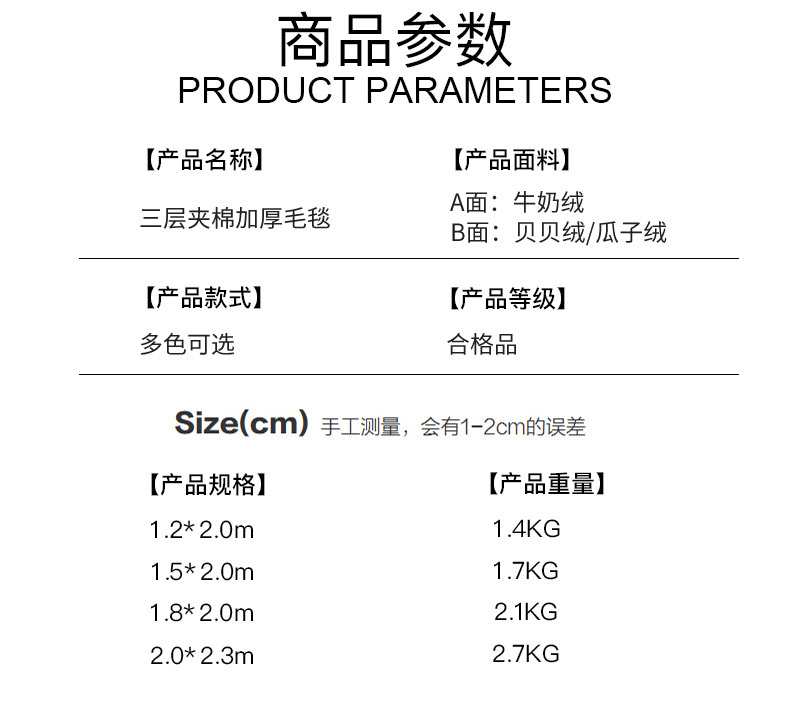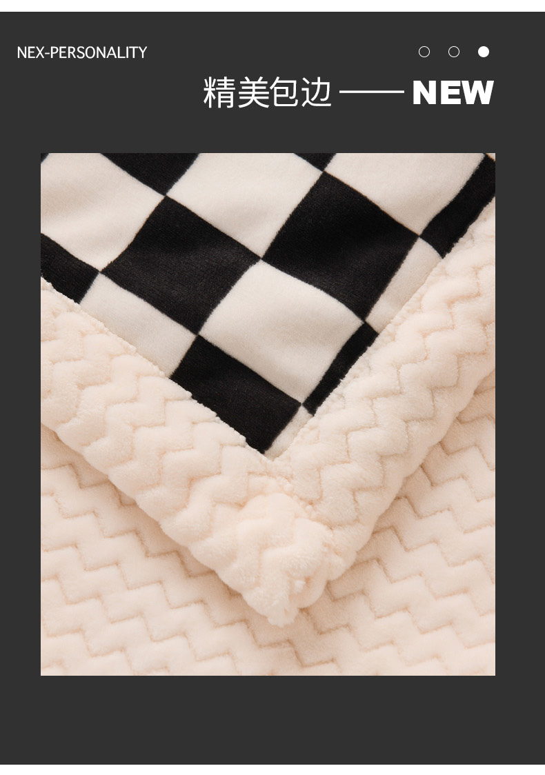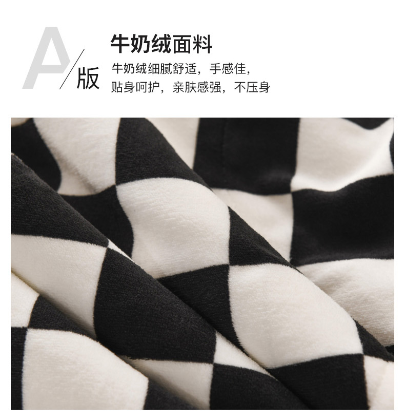 商品名称:印季家纺 2025新款三层夹棉印花牛奶绒毛毯毯子 棋盘格-黑-贝贝绒