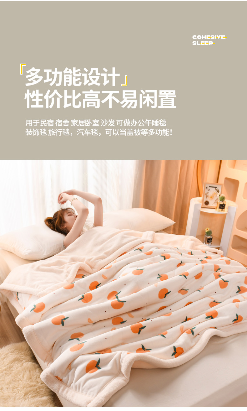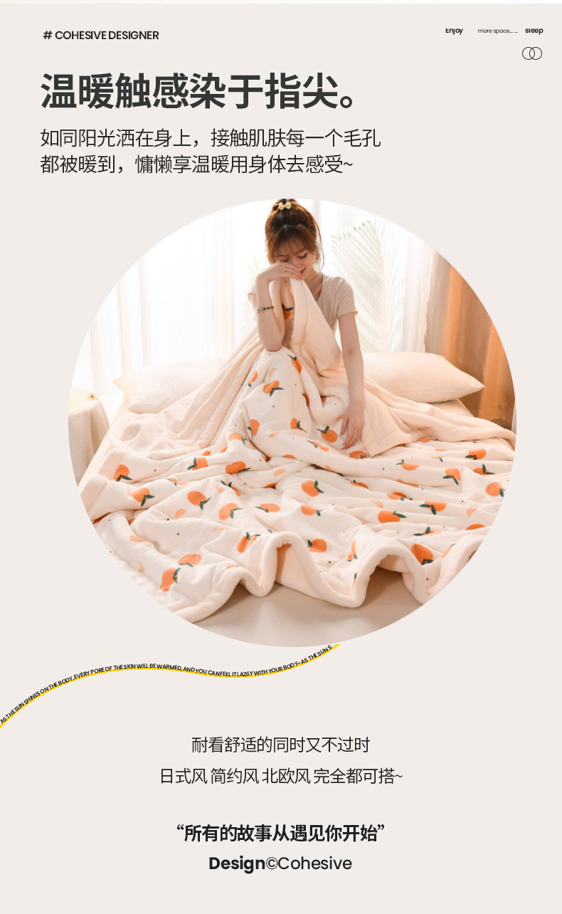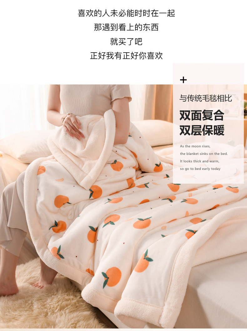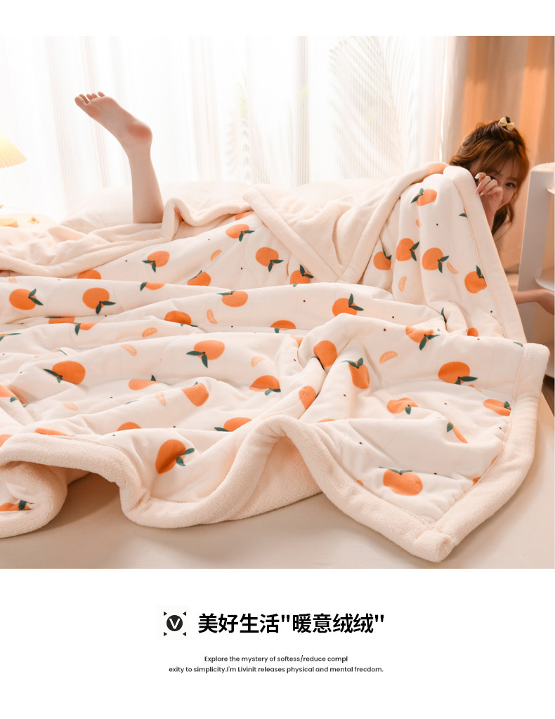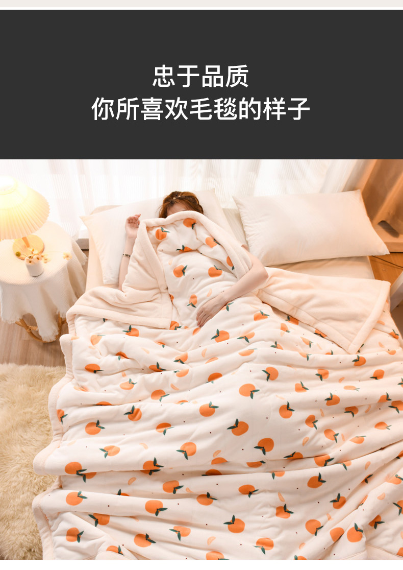 商品名称:印季家纺 2025新款三层夹棉印花牛奶绒毛毯毯子 甜橙-羊羔绒