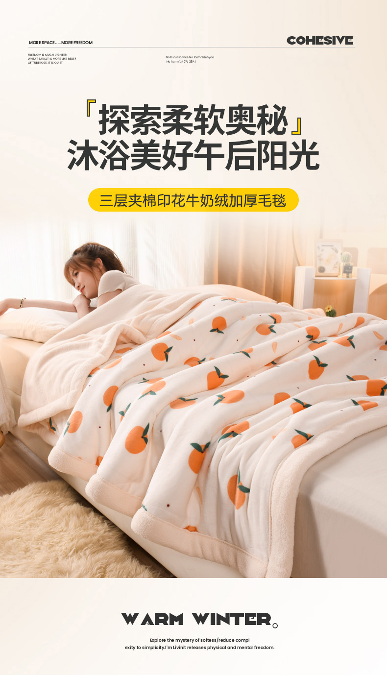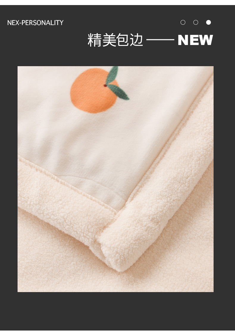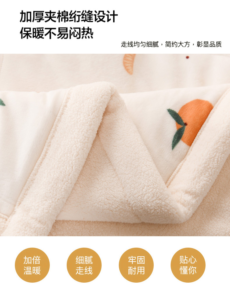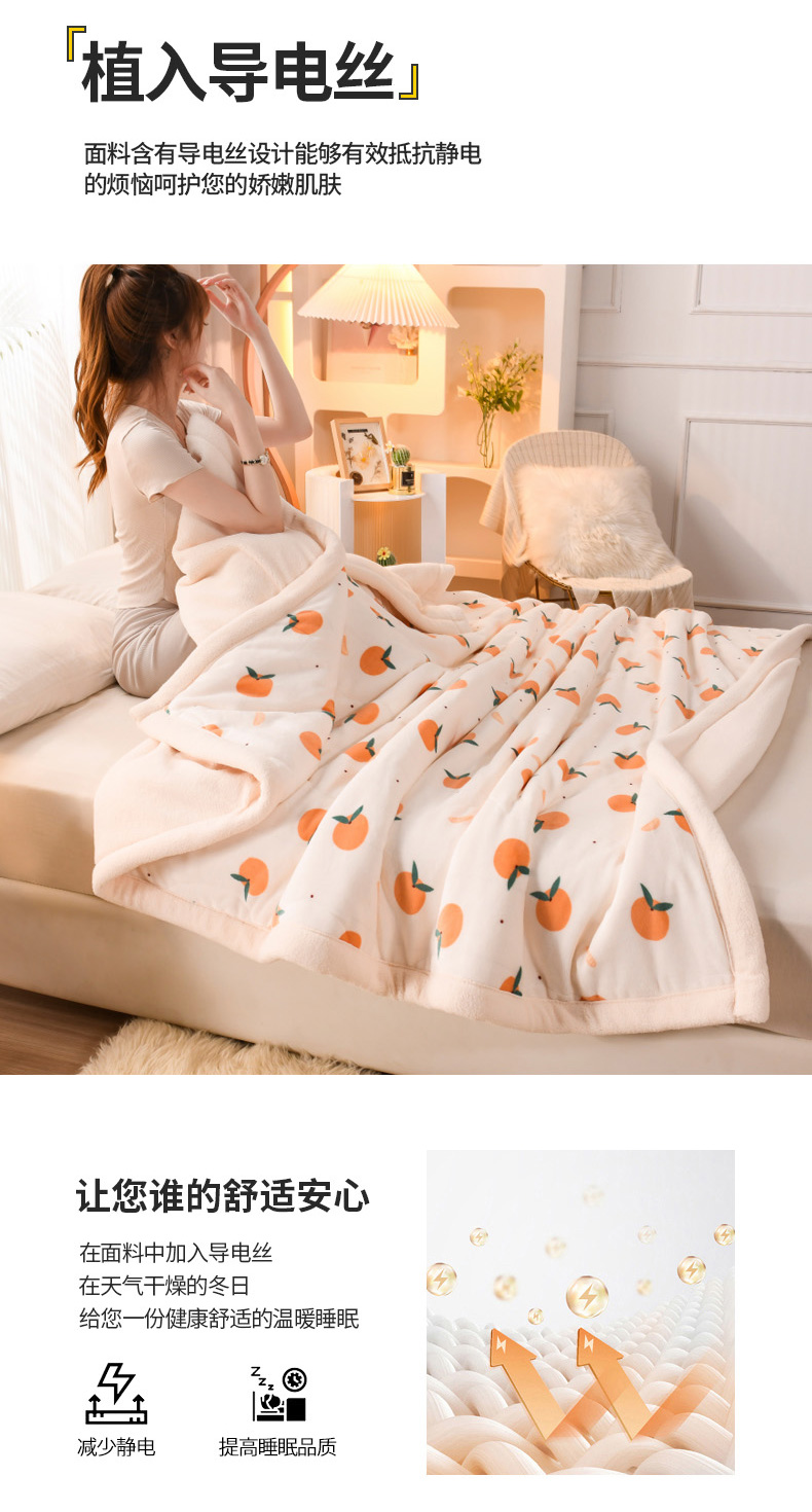 商品名称:印季家纺 2025新款三层夹棉印花牛奶绒毛毯毯子 甜橙-羊羔绒