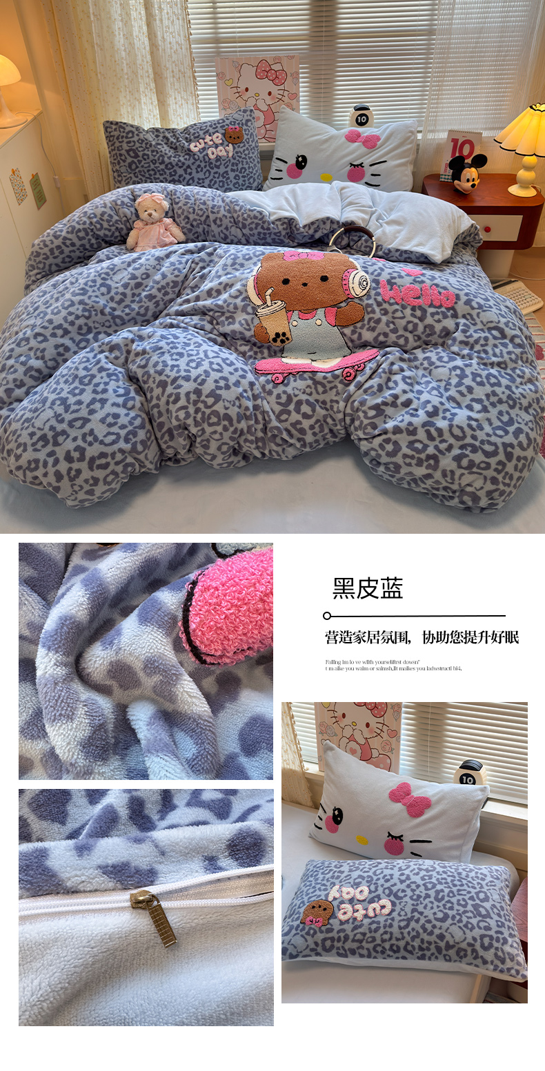 当前位置: 91家纺网 > 商品网购 > 床品套件 > 四件套 > 牛奶绒四件套 > 罗亿家纺 2025新款高克重200g牛奶绒数码印花毛巾绣卡通四件套 组合