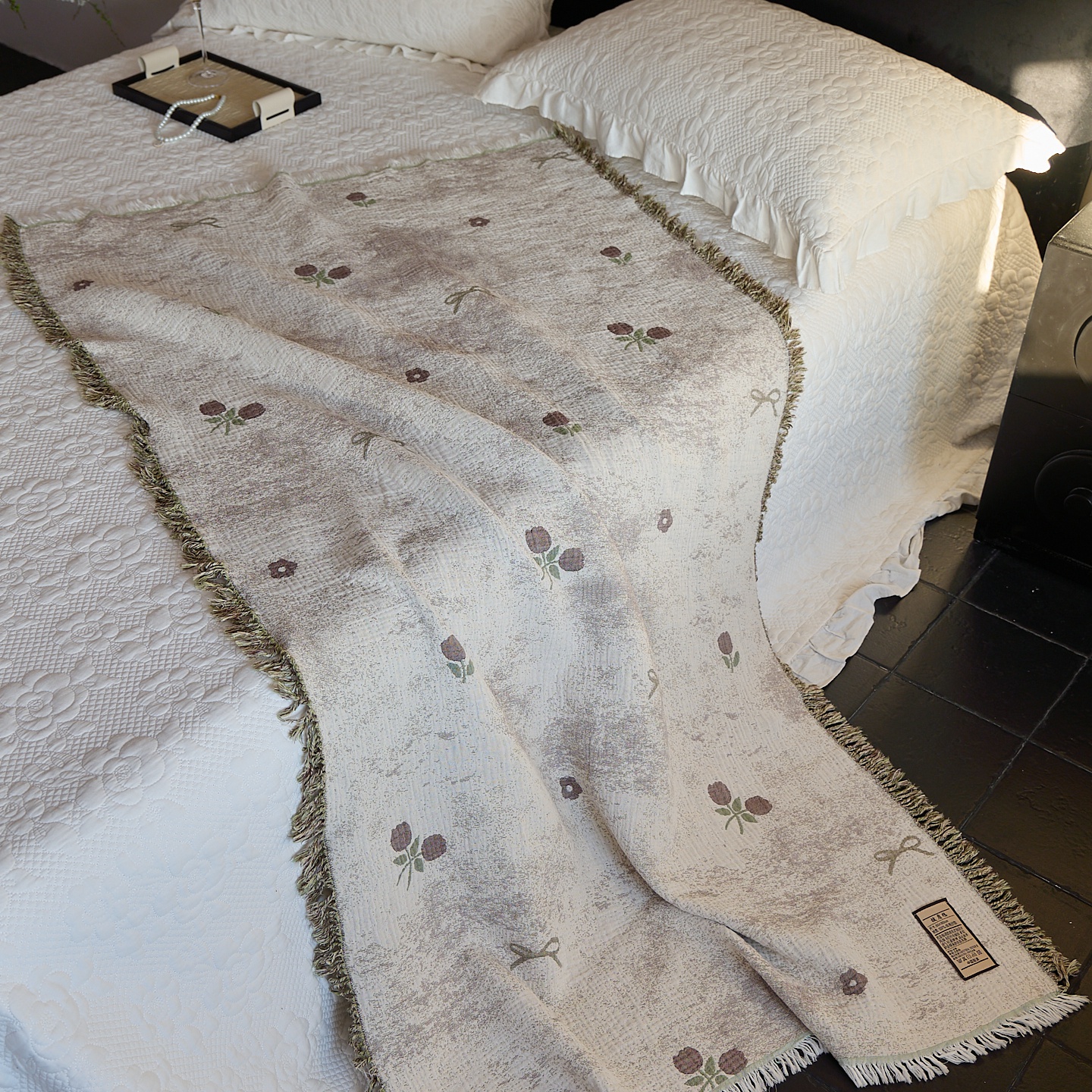 沐瑟家纺 2025新款流苏披肩毯毛毯毯子 梨落