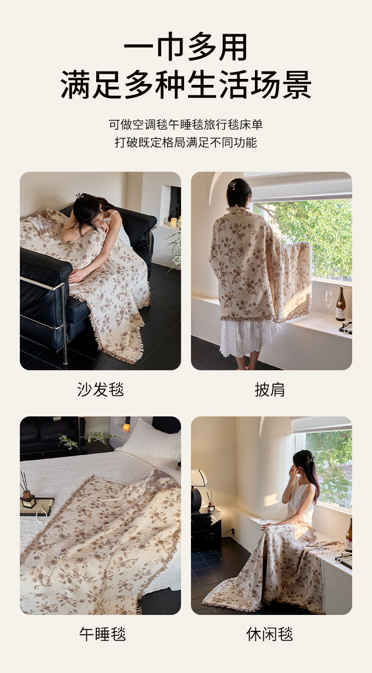 商品名称:沐瑟家纺 2025新款流苏披肩毯毛毯毯子 梨落