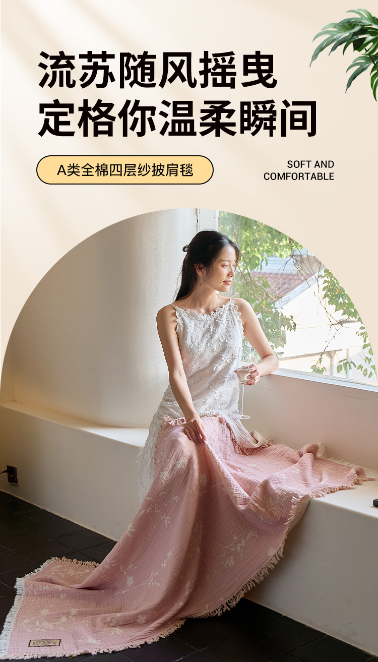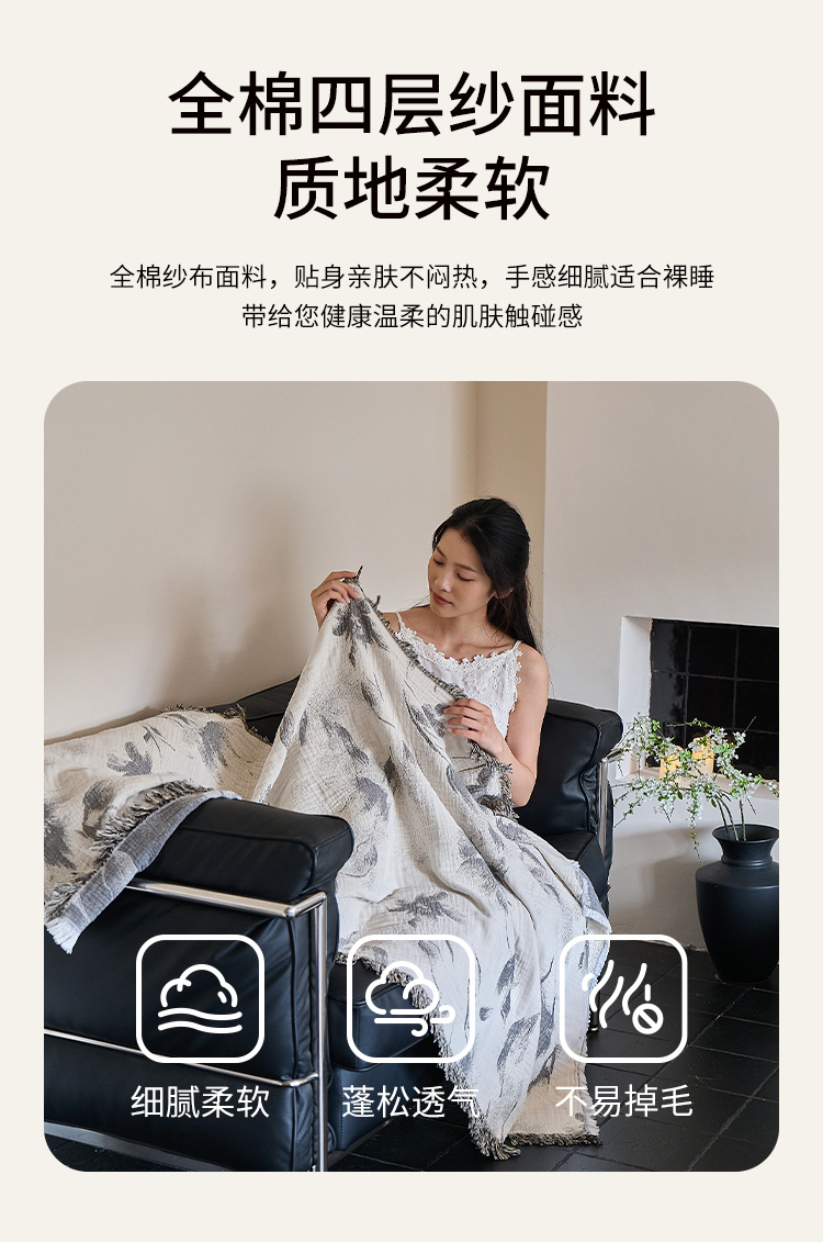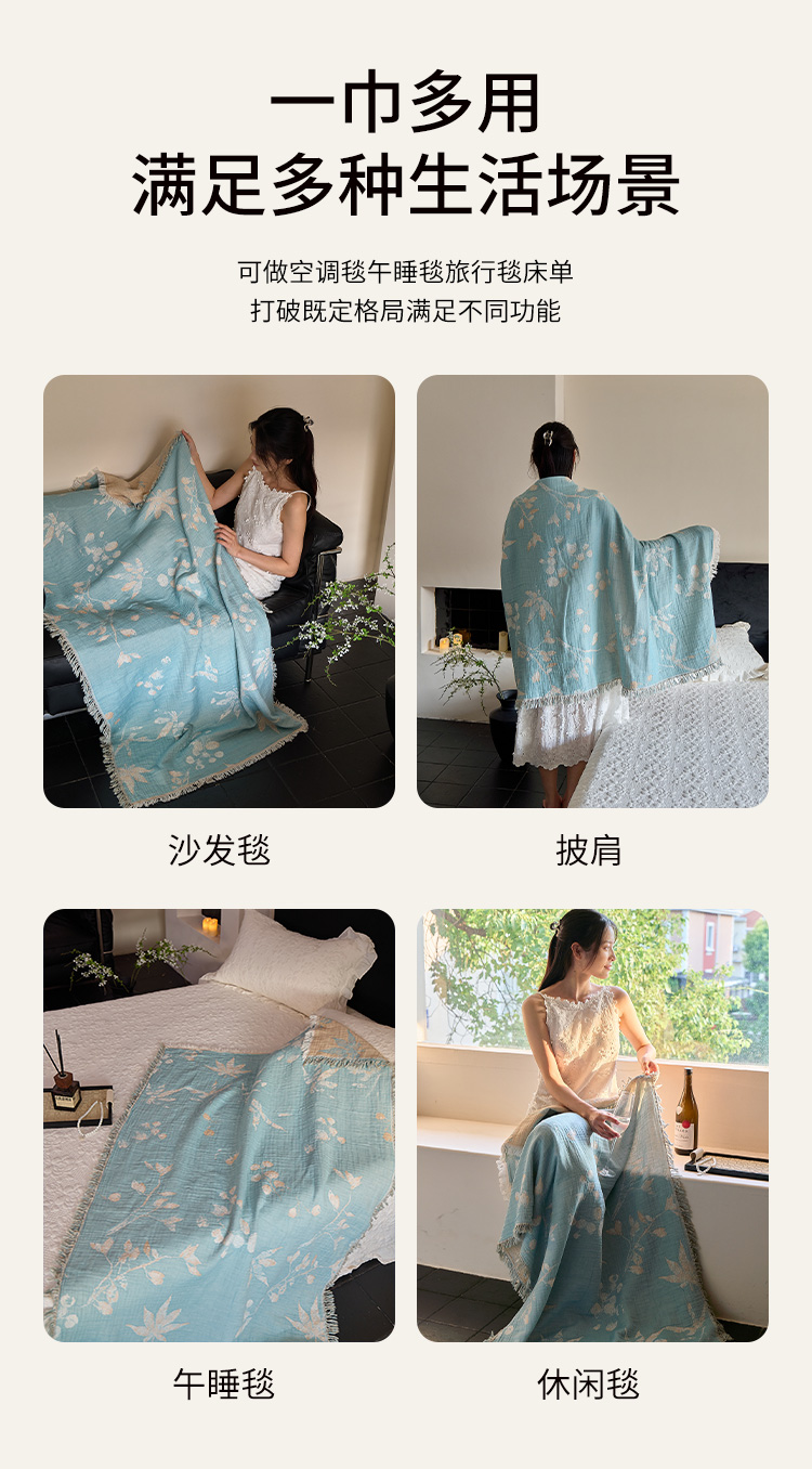 (总)沐瑟家纺 2025新款亲肤柔软全棉纱布中国风盖毯毯子,百花集,翠影鸟-蓝色,花想容,花鸟韵,蝶语-绿,蝶语-淡粉,花蝶-米,比翼鸟,墨葵,绮梦花