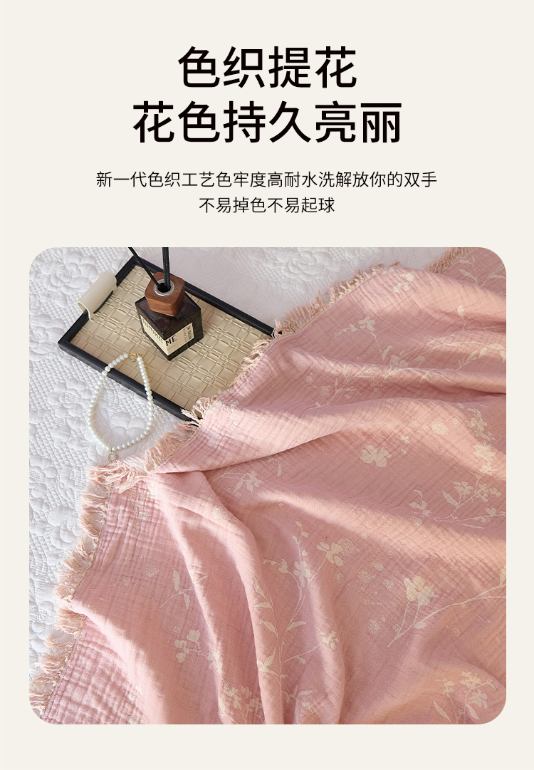 (总)沐瑟家纺 2025新款简约风多功能纱布盖毯纱布毯子毛巾被床盖沙发巾单毯枕巾枕套三件套,H本色,H橙色,H咖色,大马士革本色