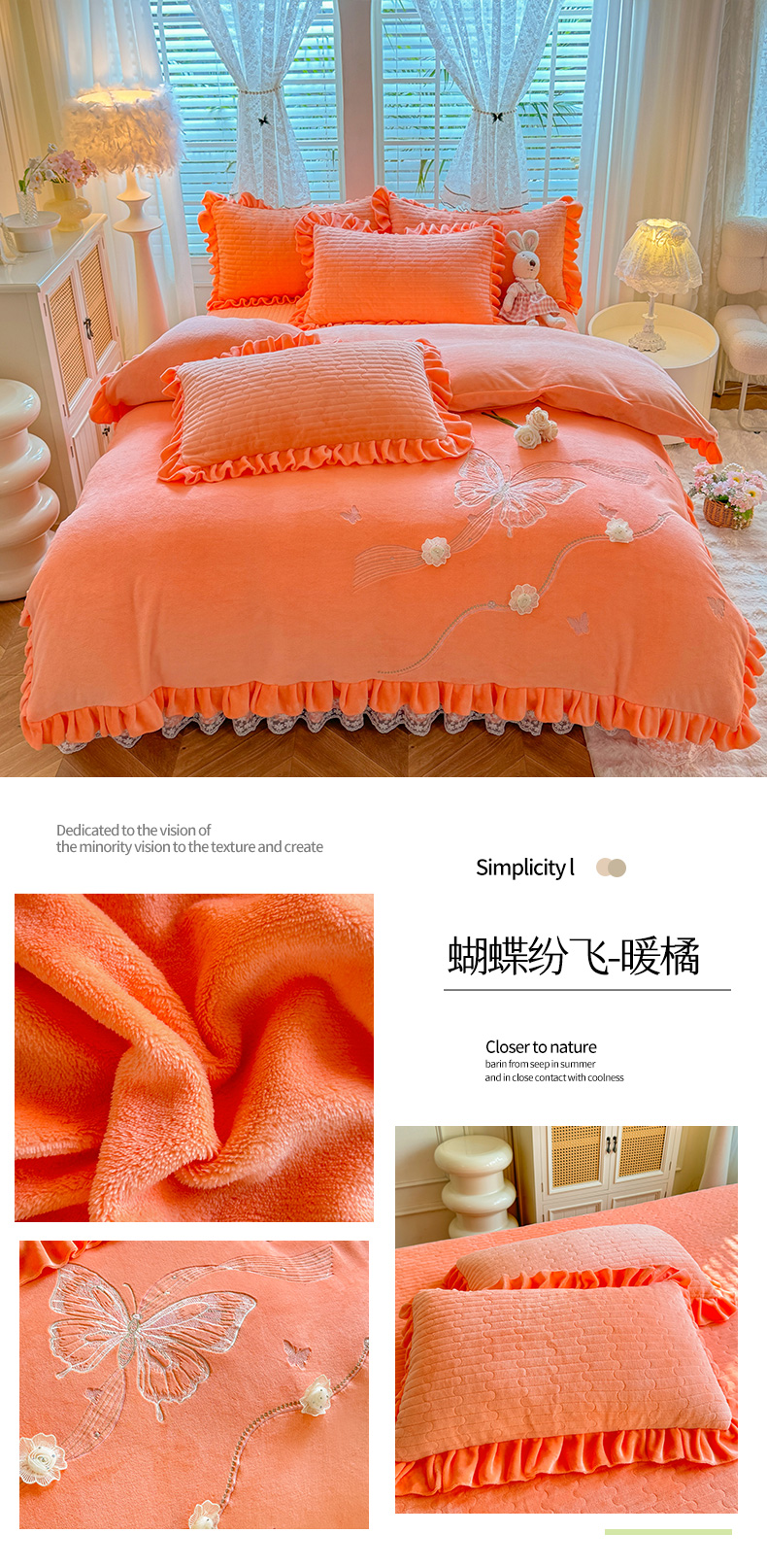 (总)唐人居 2025新款高克重牛奶绒花边夹棉四件套-蝴蝶纷飞,蝴蝶纷飞-浅蓝,蝴蝶纷飞-豆沙,蝴蝶纷飞-浅紫,蝴蝶纷飞-暖橘,蝴蝶纷飞-粉色,蝴蝶纷飞-草绿