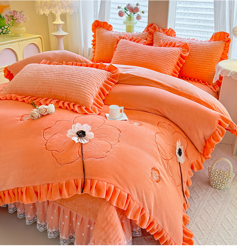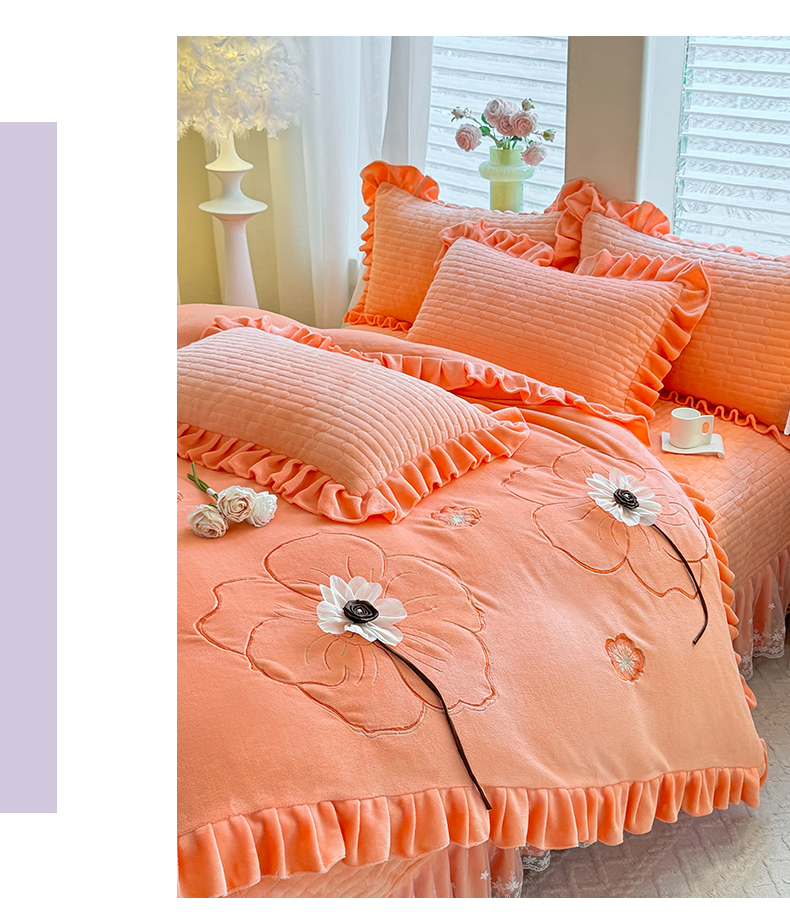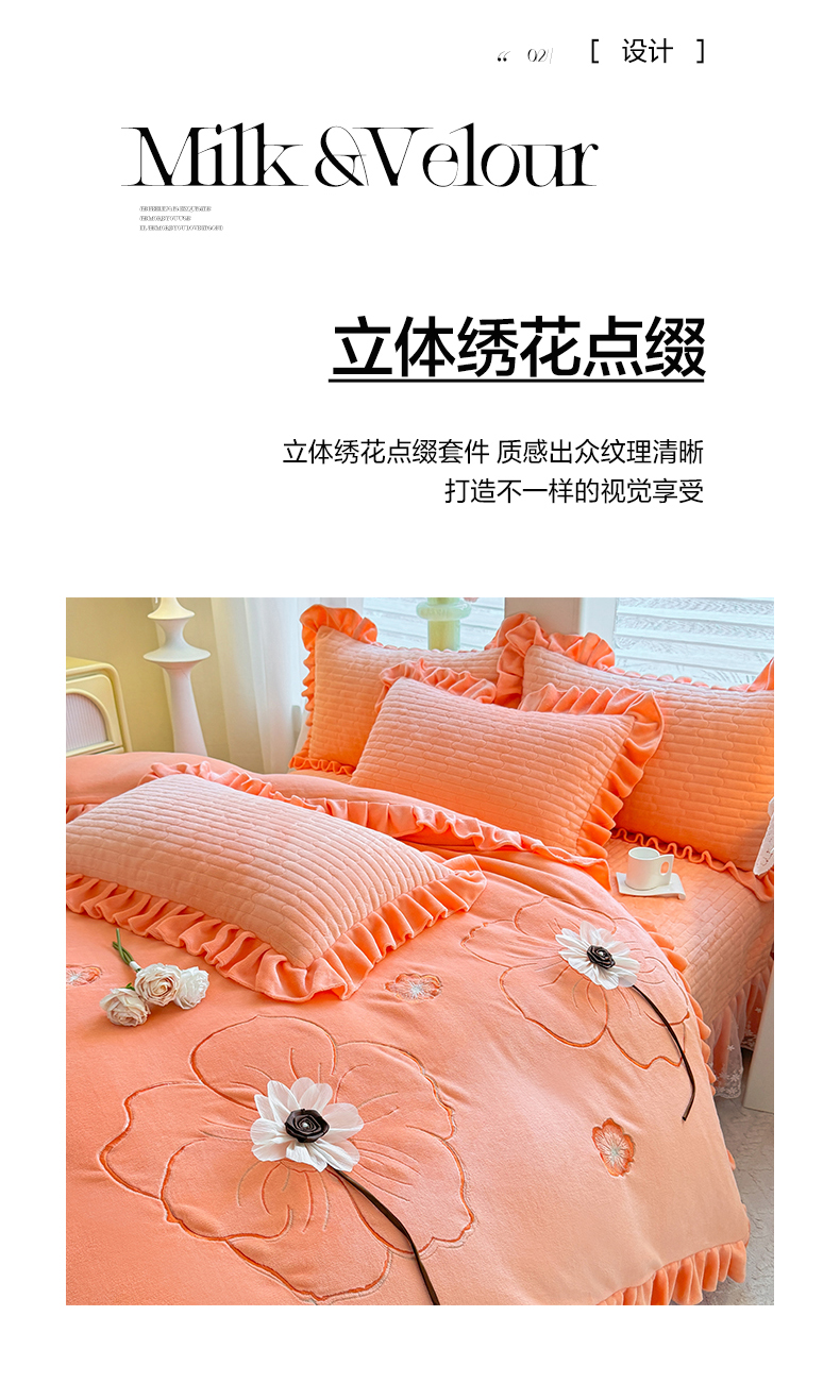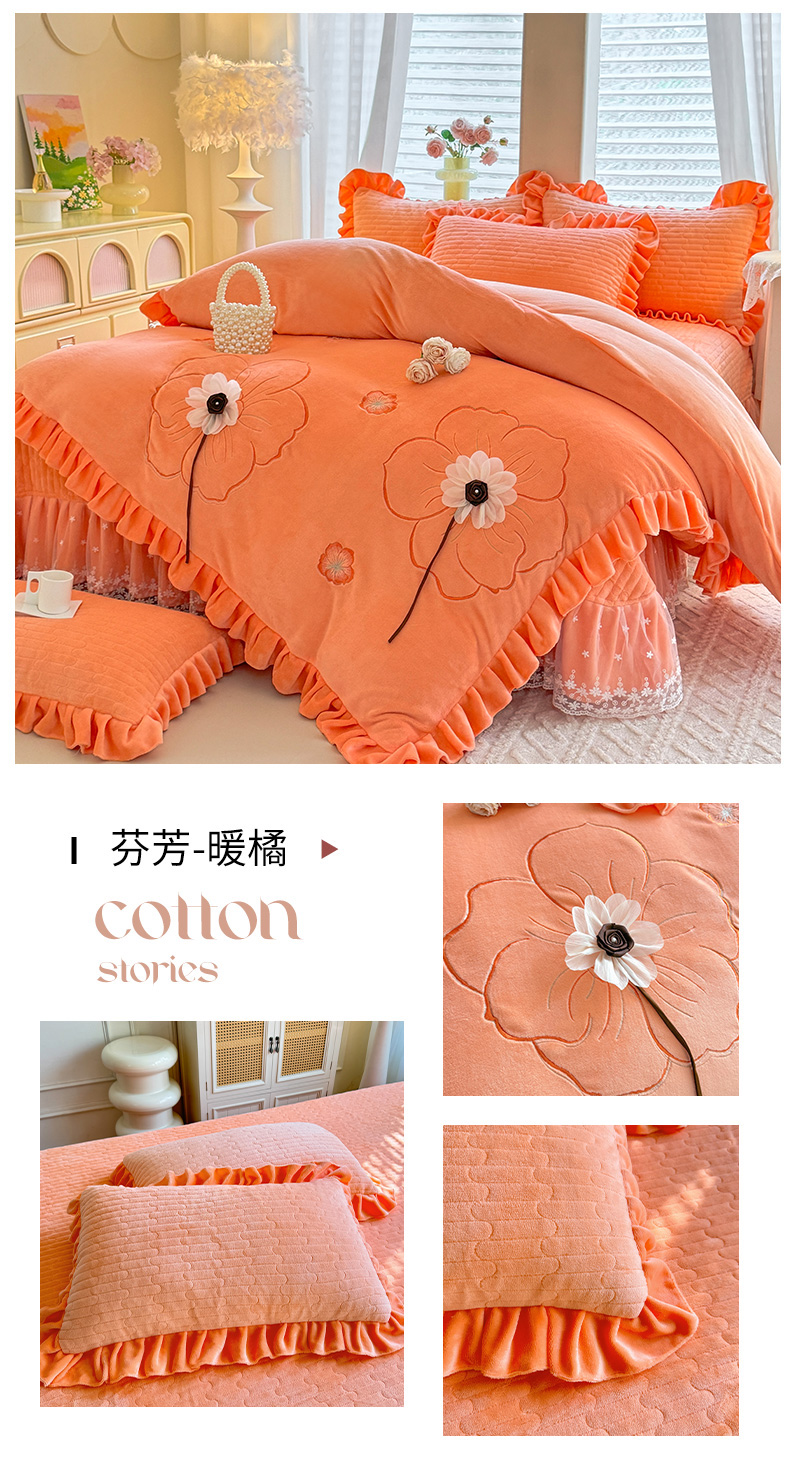 (总)唐人居 2025新款加厚牛奶绒立体绣花四件套-花漾,花漾-暖橘,花漾-草绿,花漾-豆沙,花漾-粉色,花漾-浅蓝,花漾-浅紫