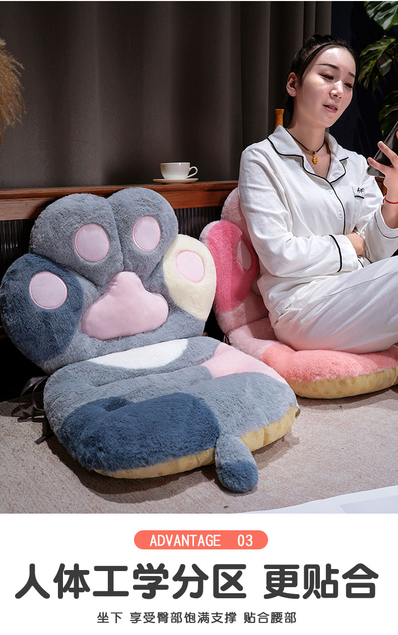商品名称:仟亿莱 2025新款仿兔毛绒萌萌猫爪连体坐垫 灰色连体毛竹