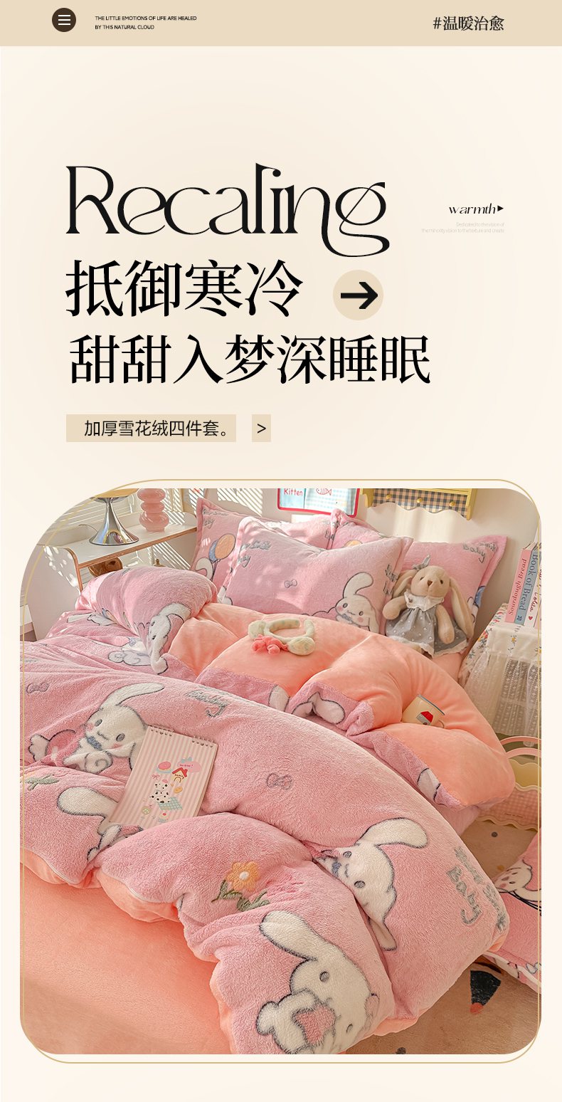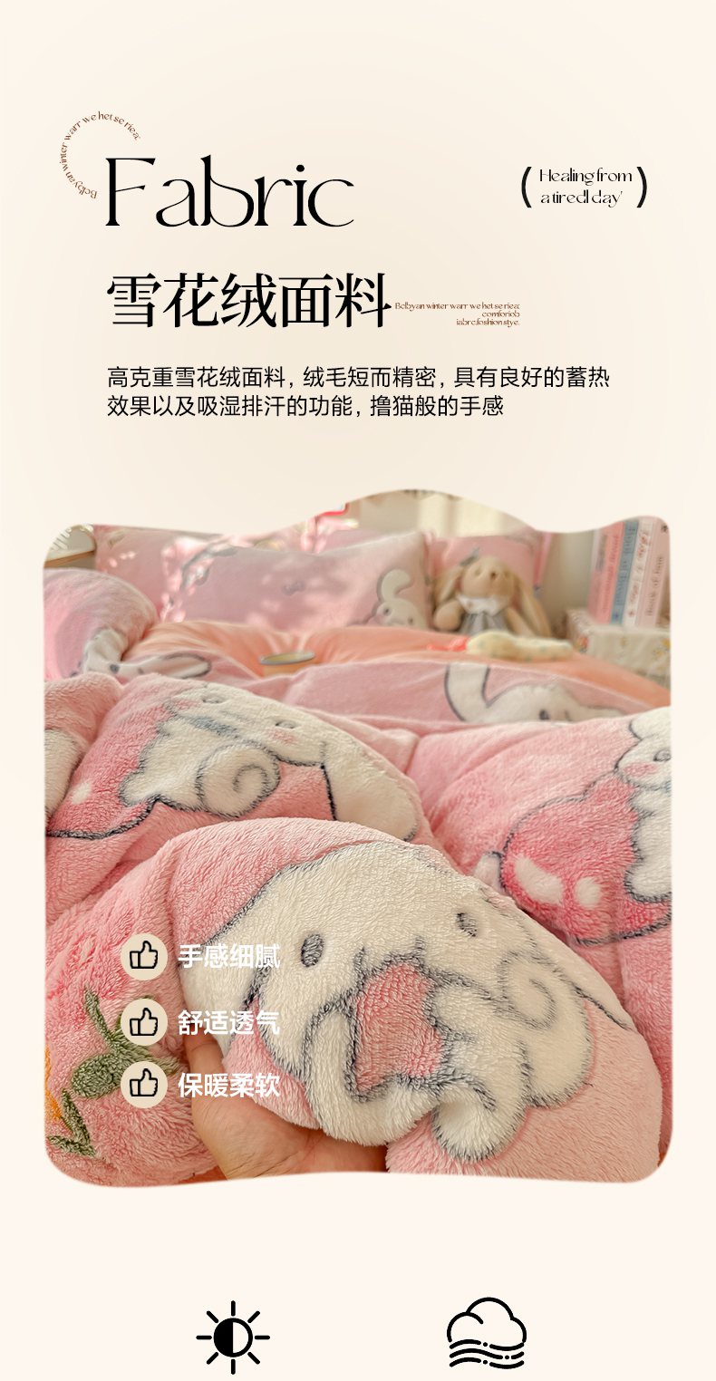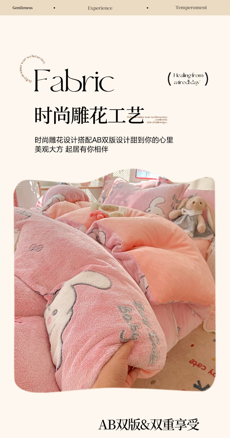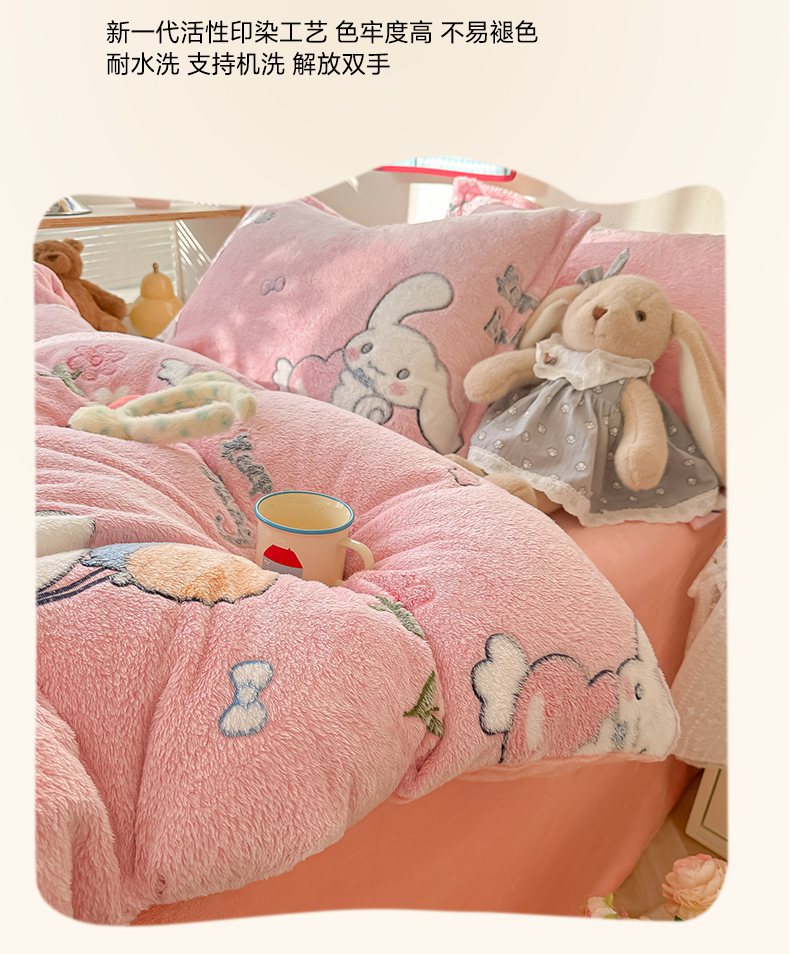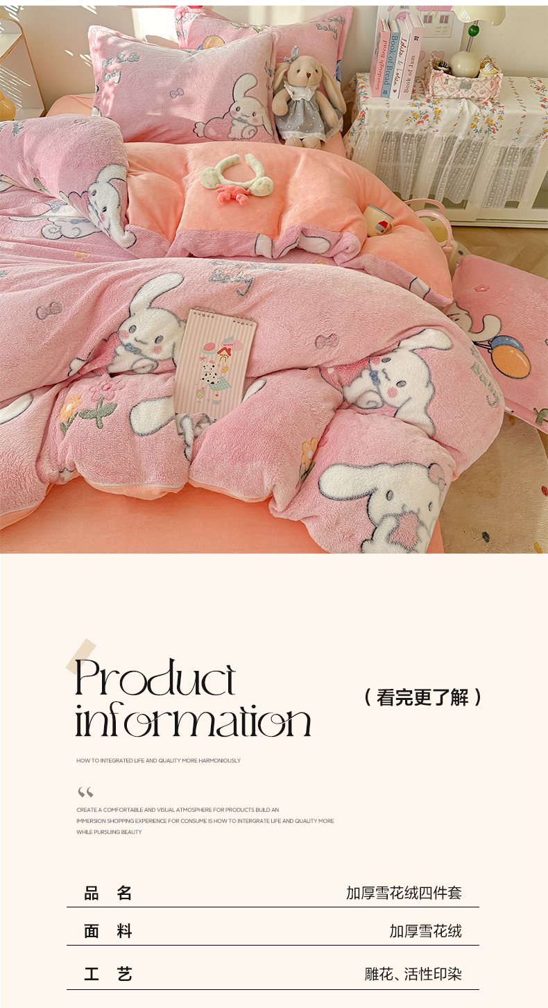 当前位置: 91家纺网 > 商品网购 > 床品套件 > 四件套 > 牛奶绒四件套 > 韩巢家纺 2025新款高克重雪花绒牛奶绒四件套系列 大耳朵兔