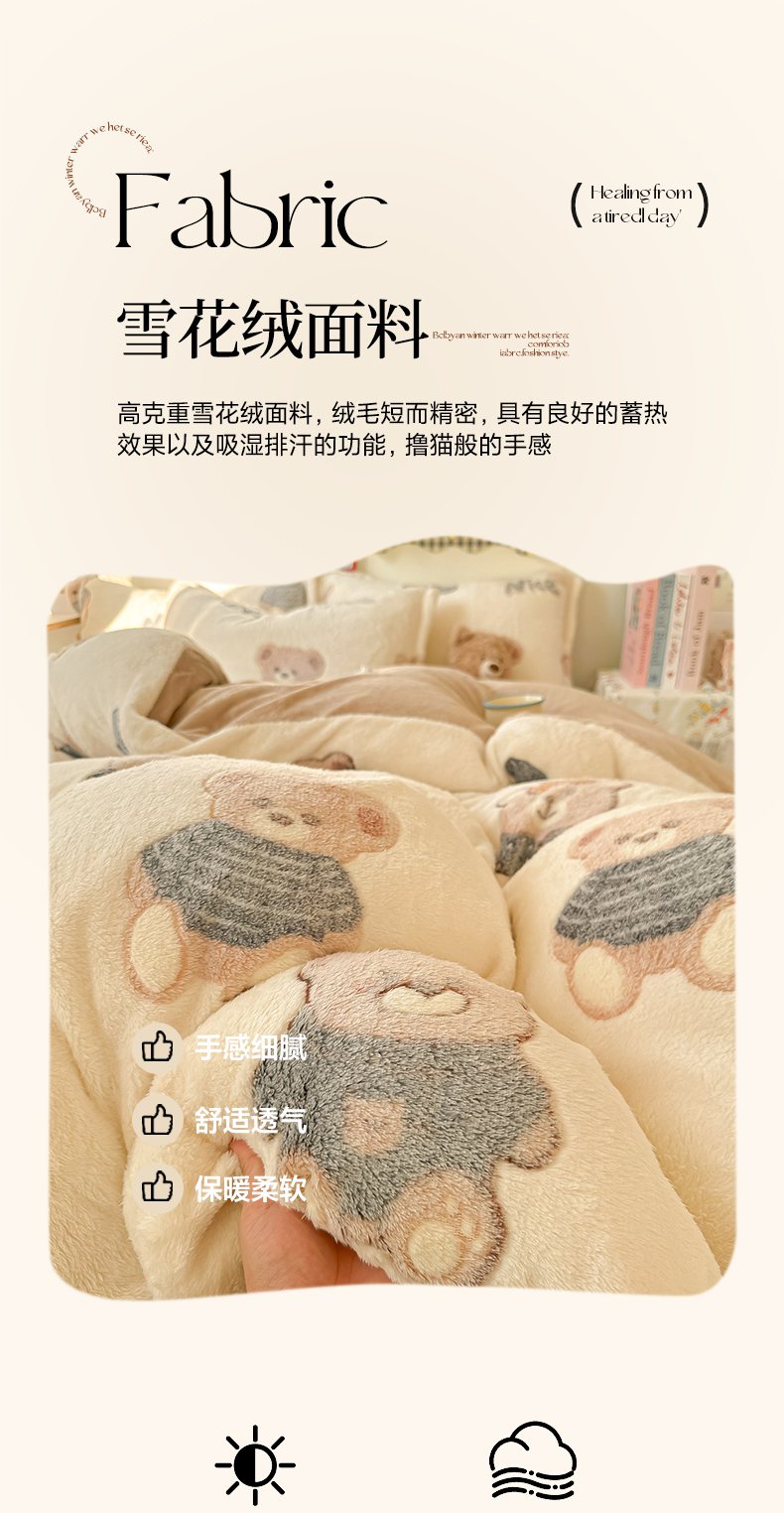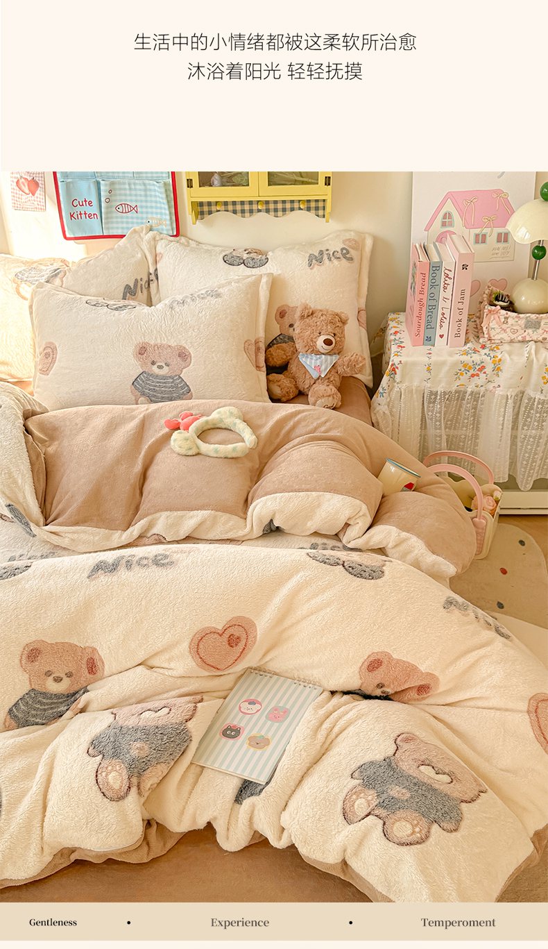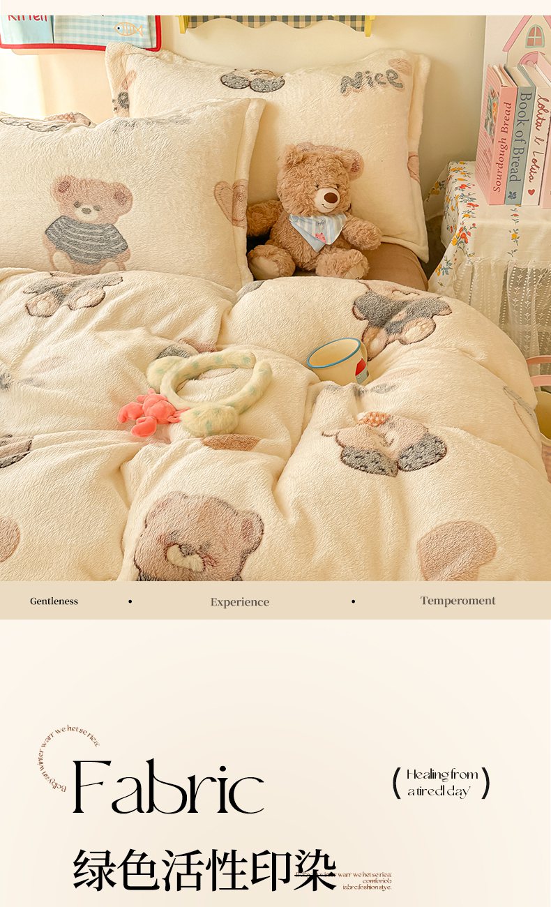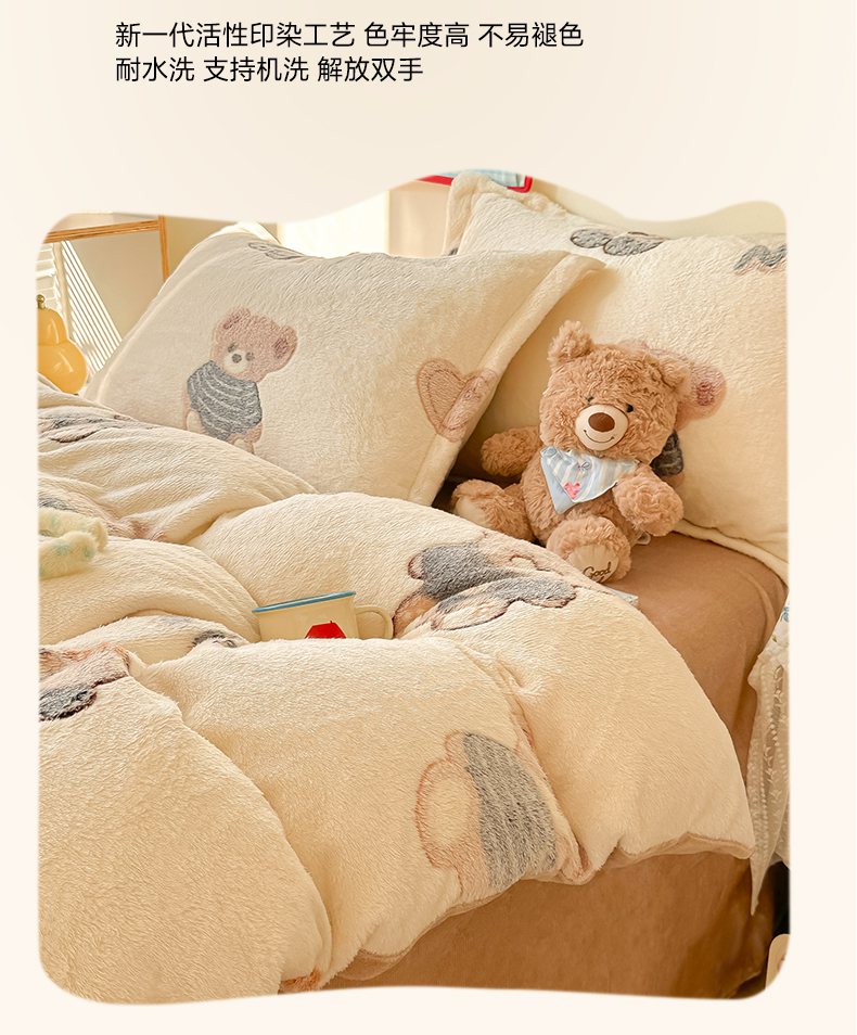 当前位置: 91家纺网 > 商品网购 > 床品套件 > 四件套 > 牛奶绒四件套 > 韩巢家纺 2025新款高克重雪花绒牛奶绒四件套系列 英伦熊