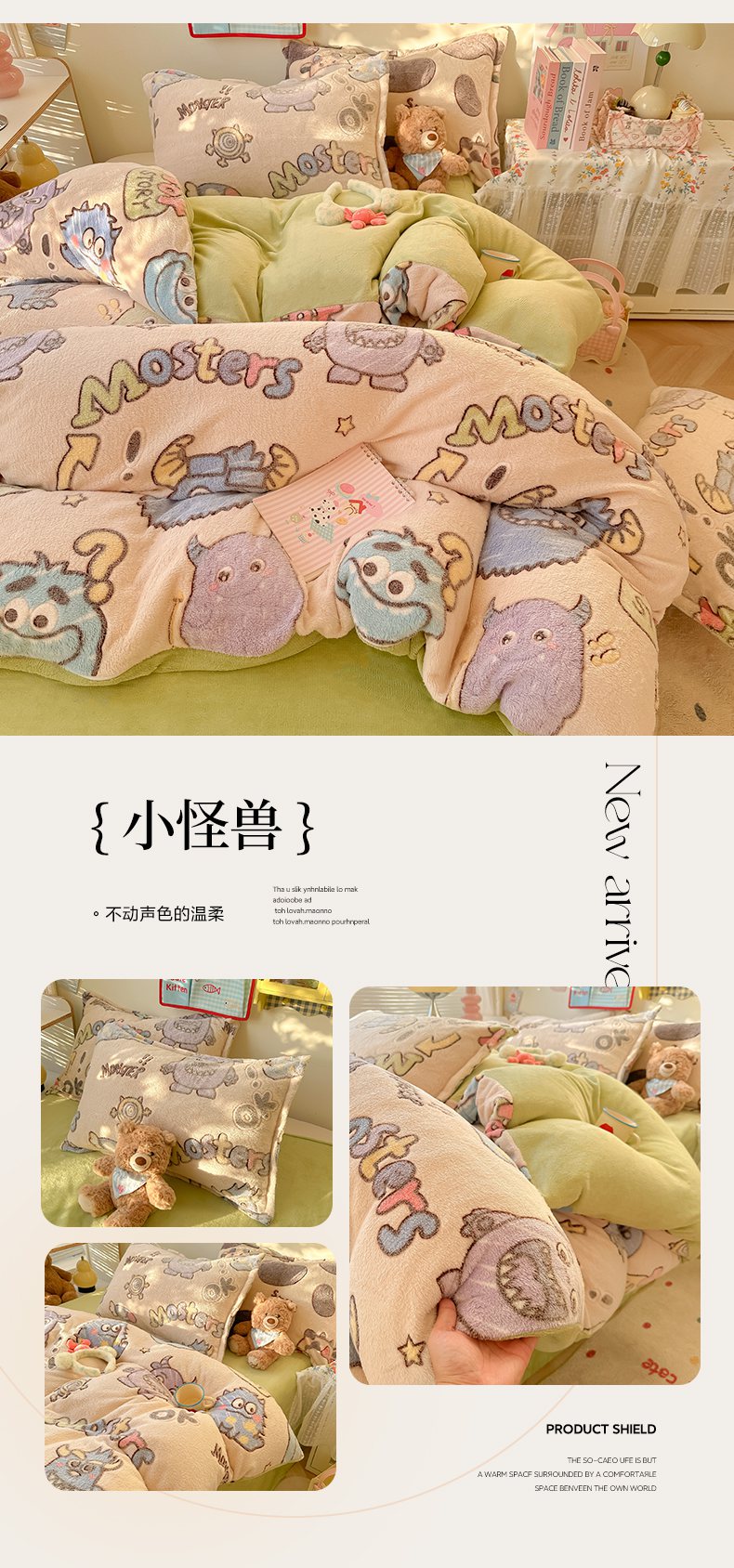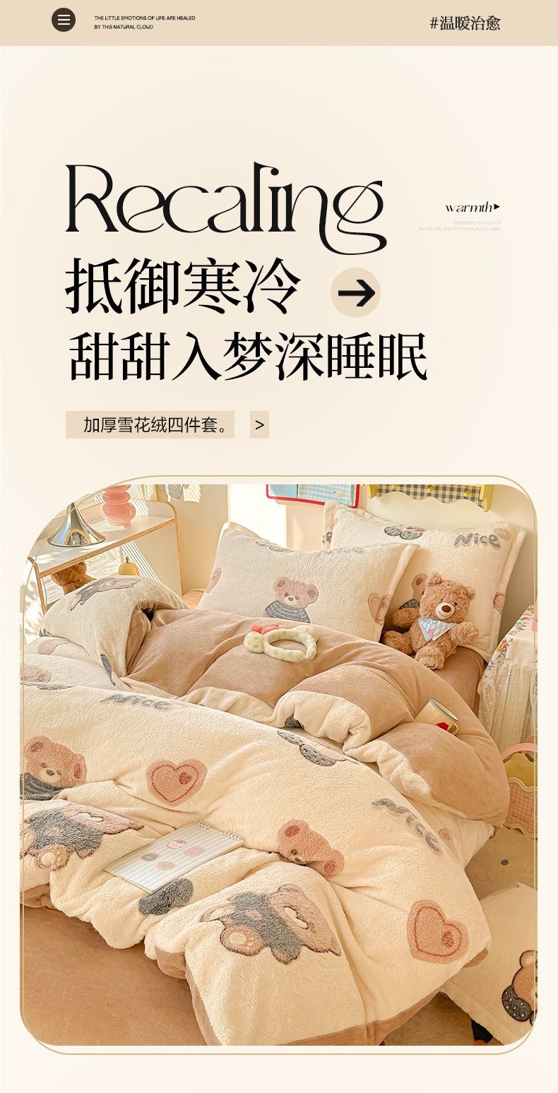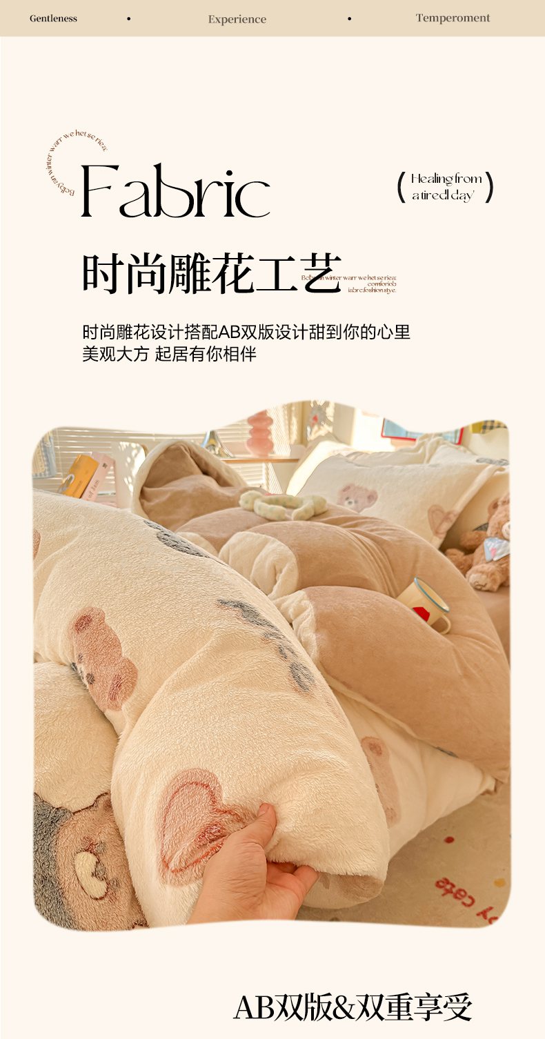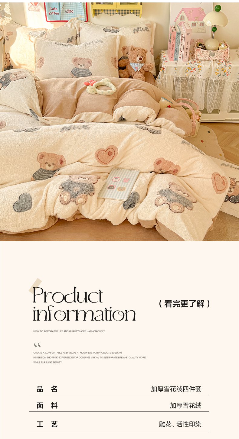 当前位置: 91家纺网 > 商品网购 > 床品套件 > 四件套 > 牛奶绒四件套 > 韩巢家纺 2025新款高克重雪花绒牛奶绒四件套系列 英伦熊