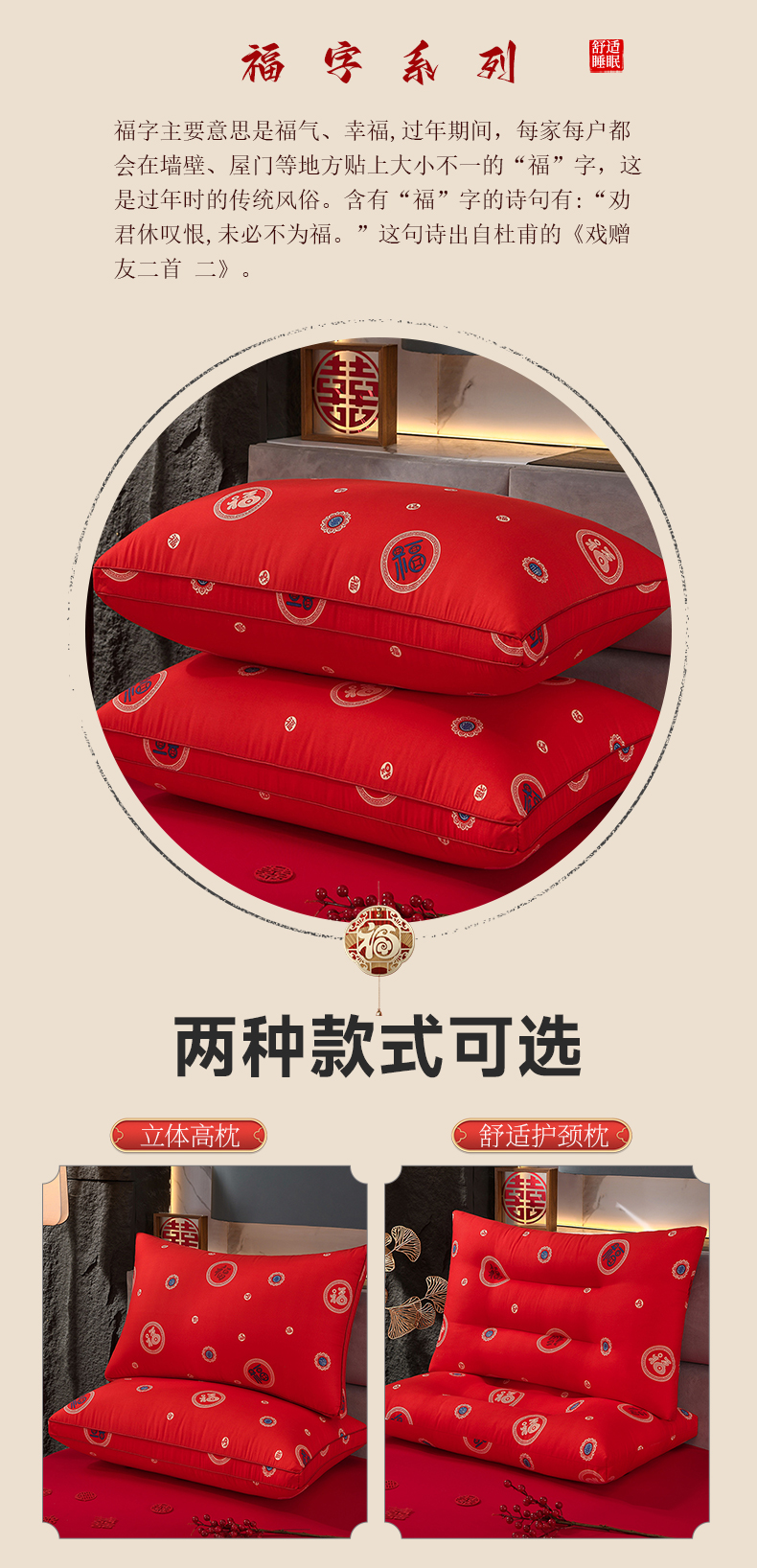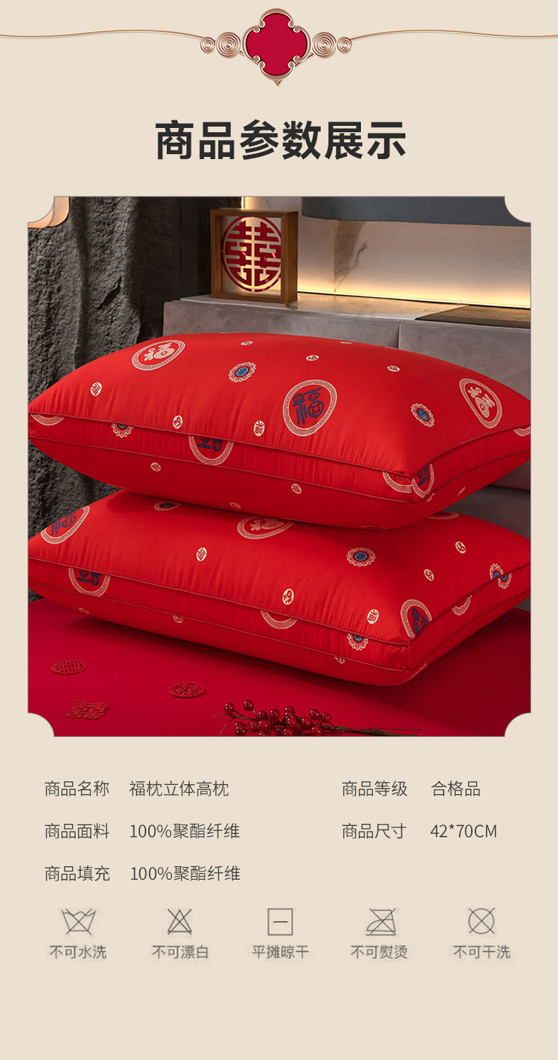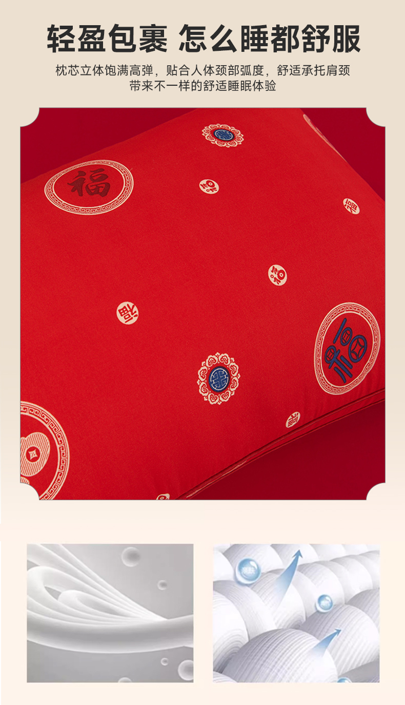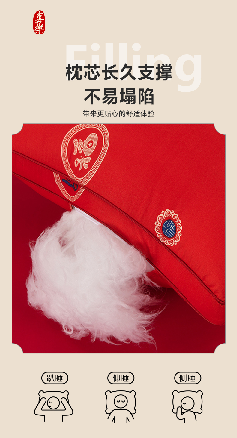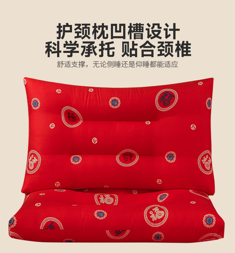 (总)圣楚家纺 2025新款双囍枕枕头枕芯,囍枕定型低枕,囍枕立体高枕