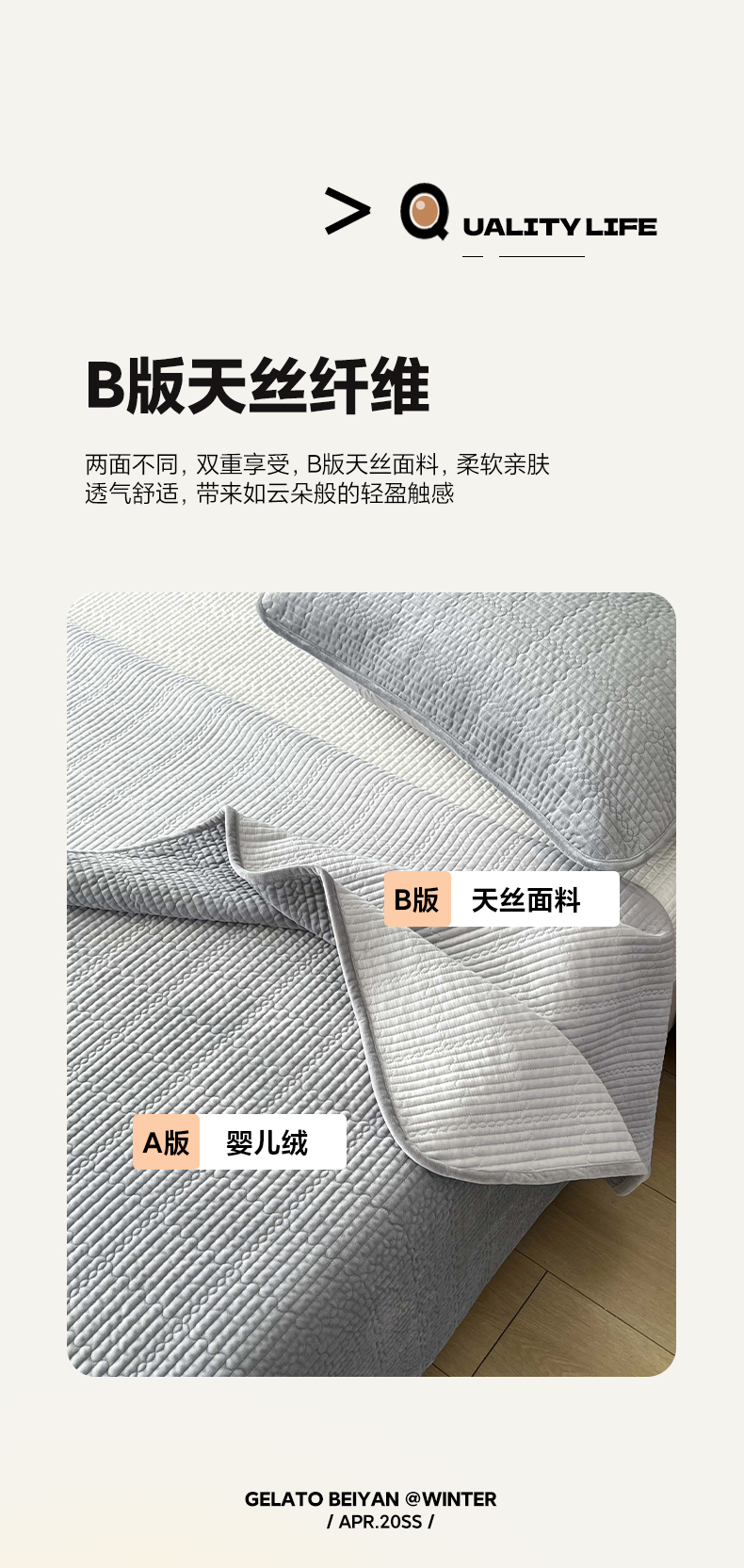 沐纯家居 2025新款婴儿绒天丝水洗床盖三件套-赫拉 赫拉-高级灰