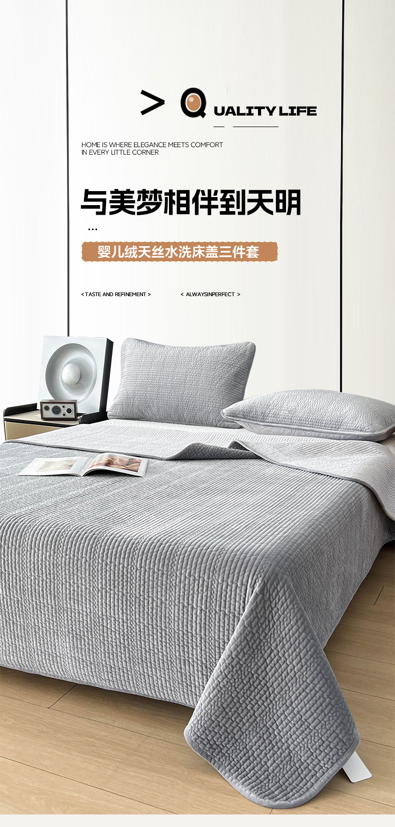 • 91家纺网 家纺一手货源 找家纺 (总)沐纯家居 2025新款婴儿绒天丝水洗床盖三件套-赫拉,赫拉-高级灰,赫拉-樱花粉,赫拉-香芋紫,赫拉-胭脂粉,赫拉-珍珠白,赫拉-孔雀绿,赫拉-摩卡色