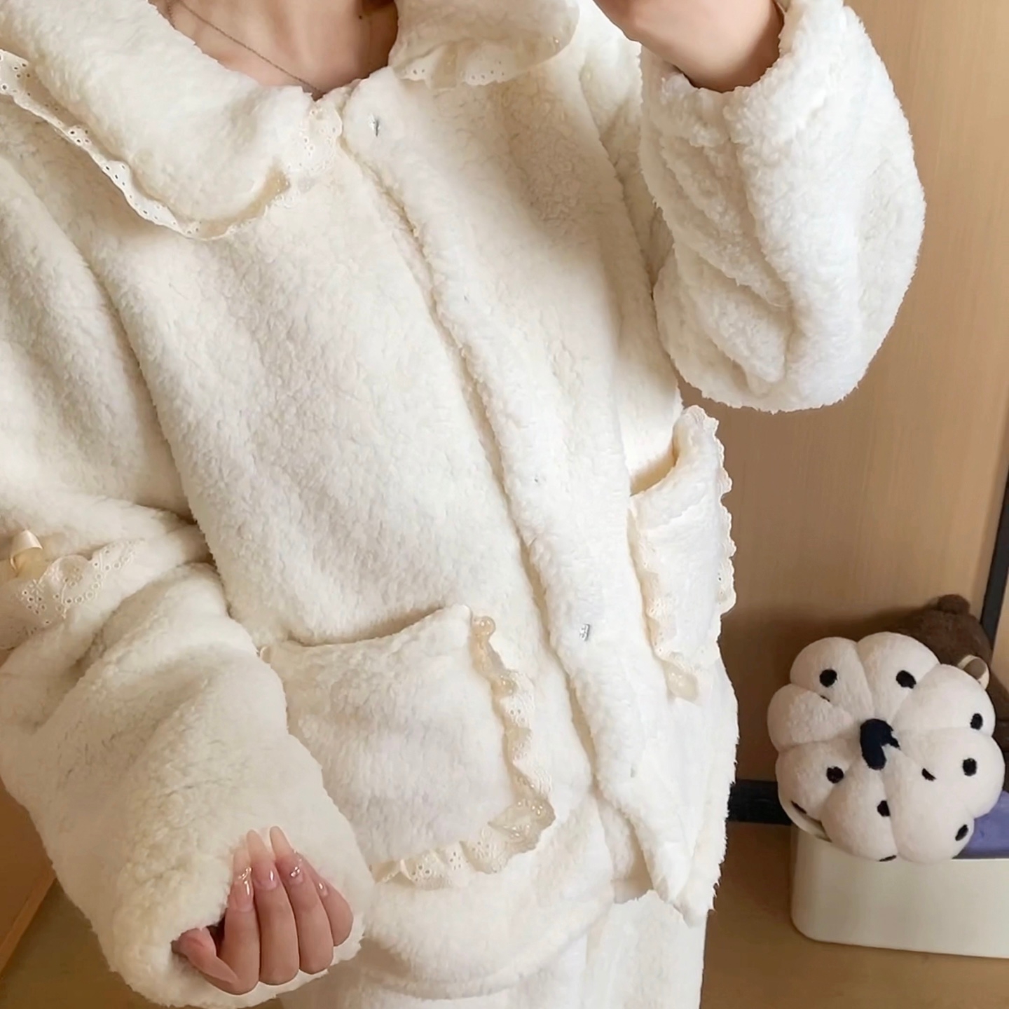 商品名称:妍景家居生活馆 2025新款韩系羊羔绒家居服-29519 奶白