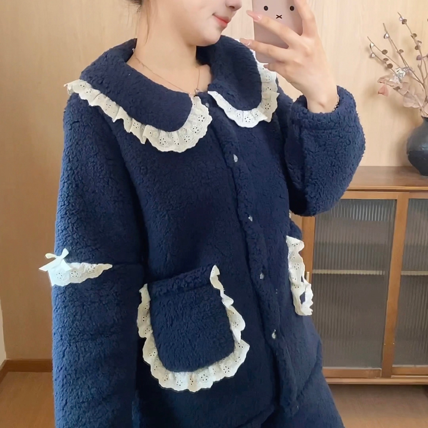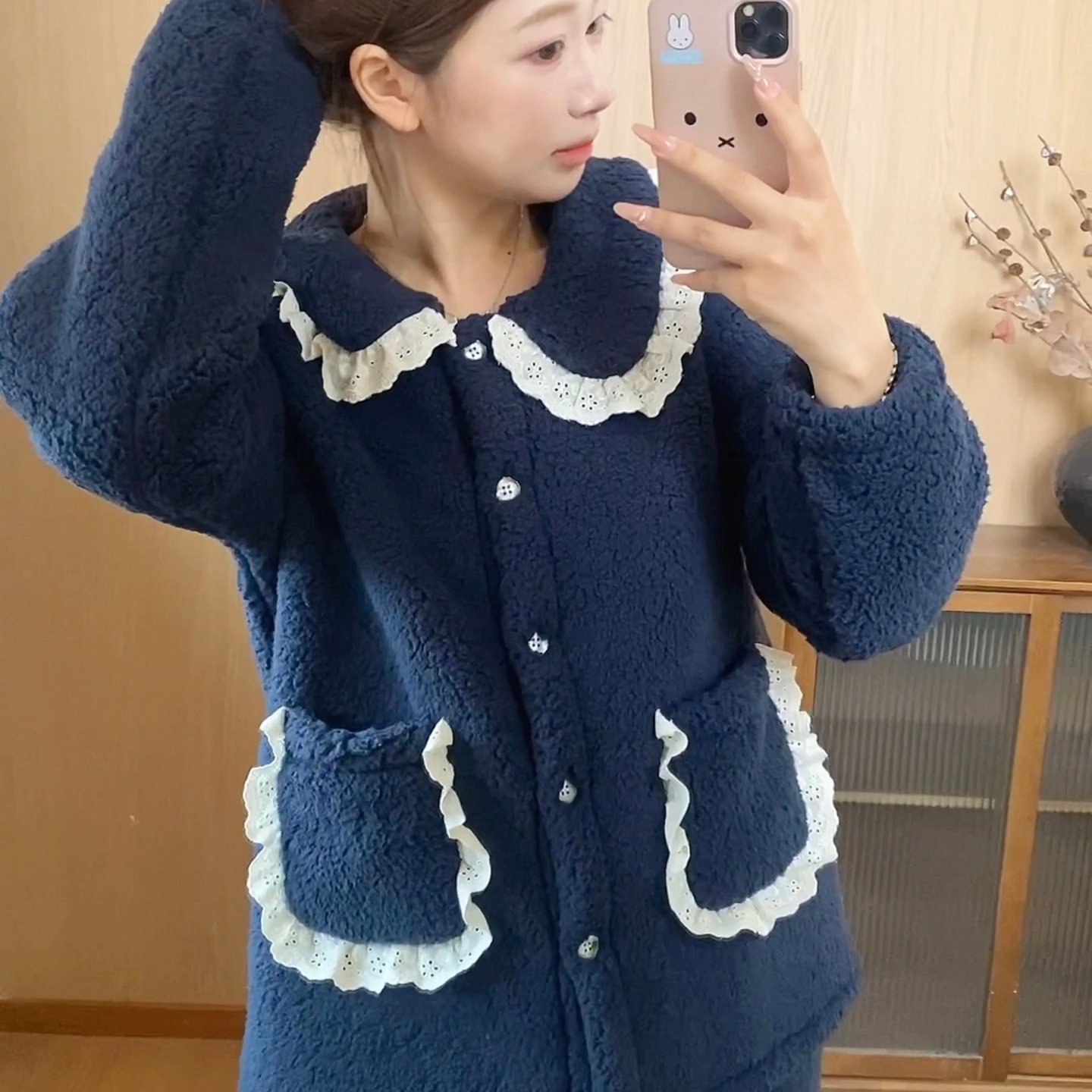 妍景家居生活馆 2025新款韩系羊羔绒家居服-29519 奶白