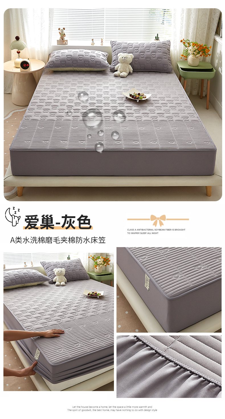 盛眠家纺 2025新款A类水洗棉磨毛夹棉防水床笠 若水-灰色