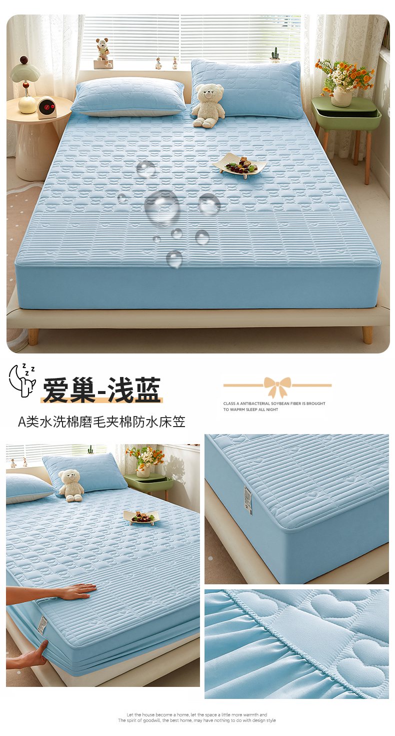 (总)盛眠家纺 2025新款A类水洗棉磨毛夹棉防水床笠,爱巢-白色,爱巢-粉红,爱巢-灰色,爱巢-卡其,爱巢-米灰,爱巢-浅蓝,爱巢-浅绿,若水-白色,若水-粉红,若水-灰色,若水-卡其,若水-米灰,若水-浅蓝,若水-浅绿