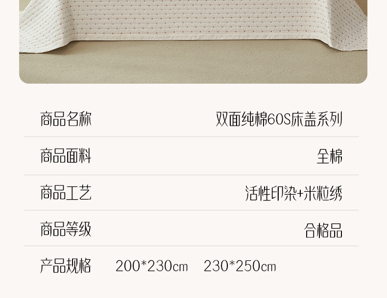 商品名称:莎果家纺 2025新款米粒绣系列双面纯棉60支平纹床盖(上架此商品联系莎果) 小米粒-白