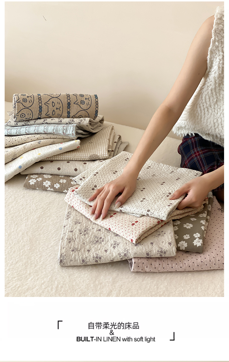 (总)麻依 2025新款韩国清新全棉纱布床盖三件套,憨憨熊,彩色南瓜,车厘子,两颗草莓,奶盖KT,奶油波点-灰,奶油彩点,水蓝KT,水墨花,丝带,桃心-米白,小猫鱼