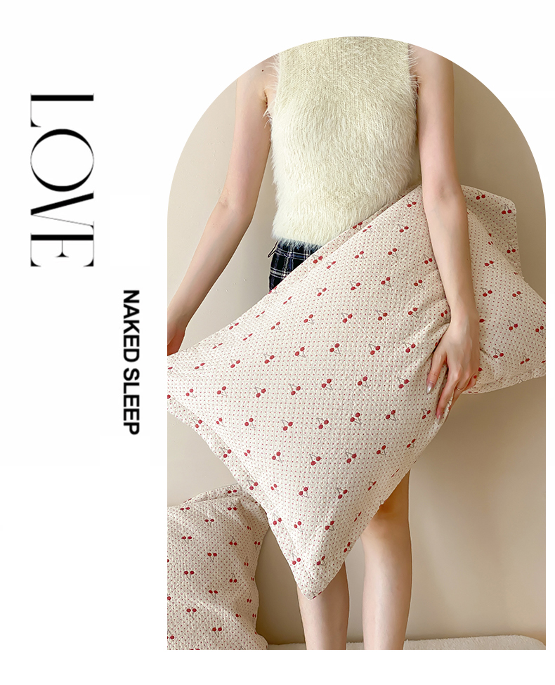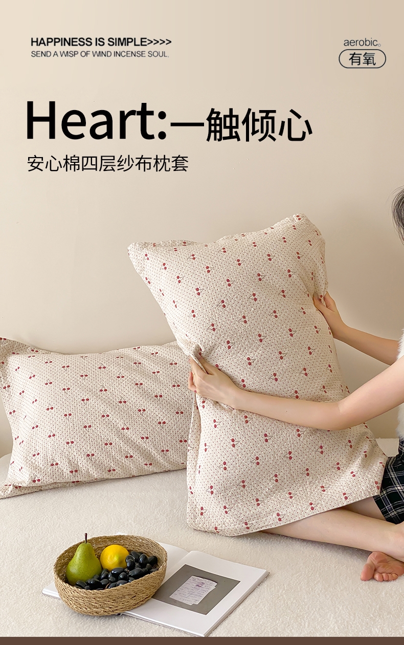 商品名称:麻依 2025新款安心棉枕套四层纱布枕套 樱桃红了