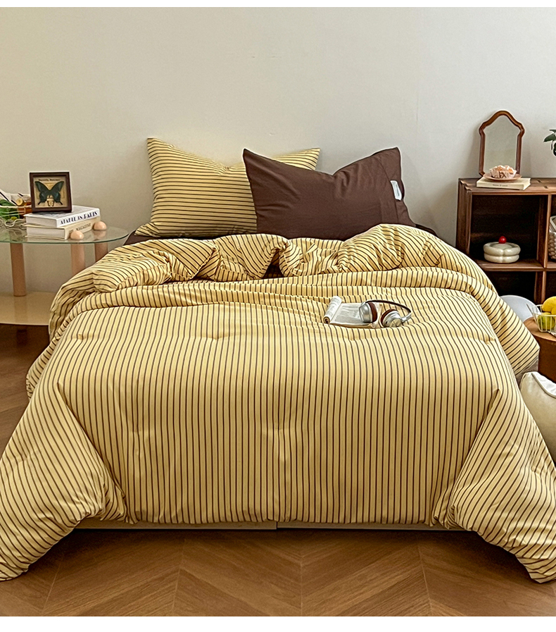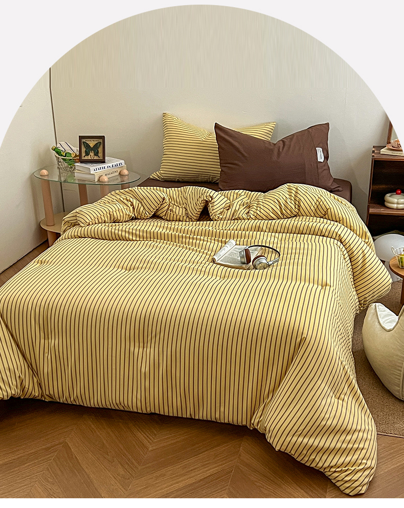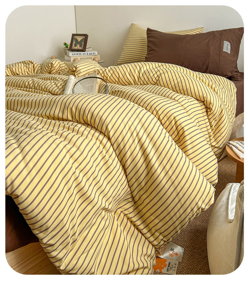 (总)优选 2025新款韩式无印风水洗棉拼色学生三件套床单床笠款四件套,条纹卡其+深红,条纹水蓝+咖啡,条纹香芋紫+深紫,条纹抹茶绿+酱紫,条纹海洋蓝+深蓝,组合,条纹柠檬黄+咖啡
