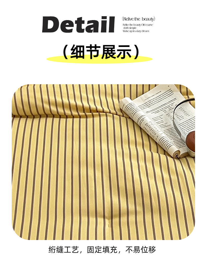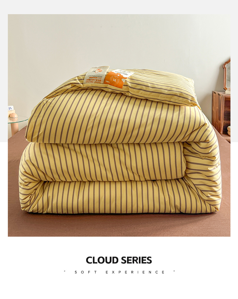 商品名称:优选 2025新款冬被水洗棉被子被芯 条纹黄+咖啡