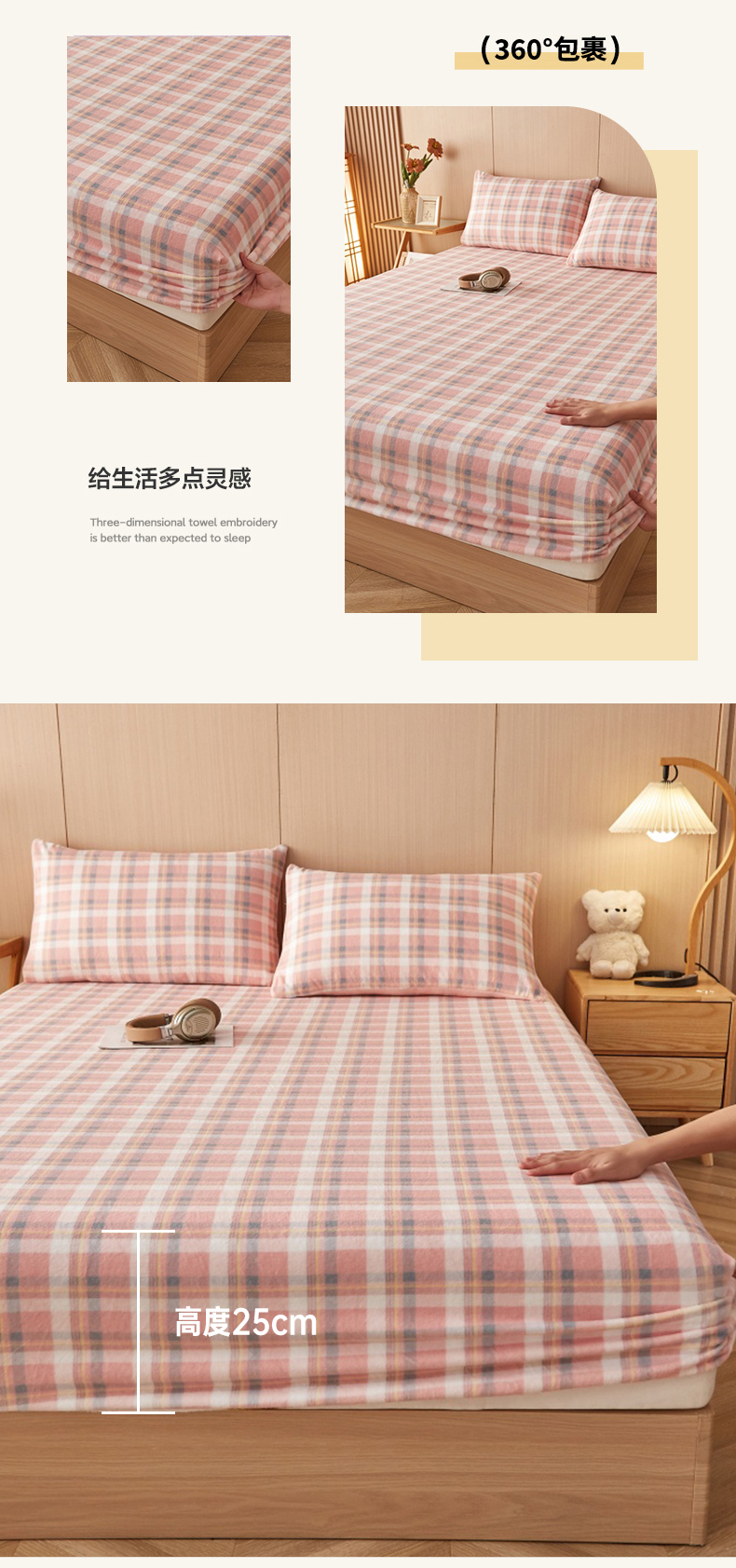 (总)一禾 2025新款简约印花高克重牛奶绒床笠,彩波点,简兮粉,简兮蓝,简兮绿,蓝大格,蓝小格,维卡蓝