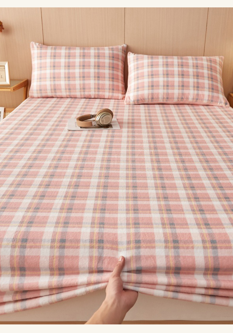 一禾 2025新款简约印花高克重牛奶绒床笠 简兮粉