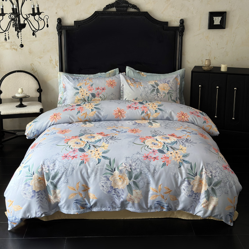 桔禾家纺 2025新款田园花卉小清新直播加厚植物羊绒四件套高克重磨毛跨境四件套 大量现货 邂逅玫瑰
