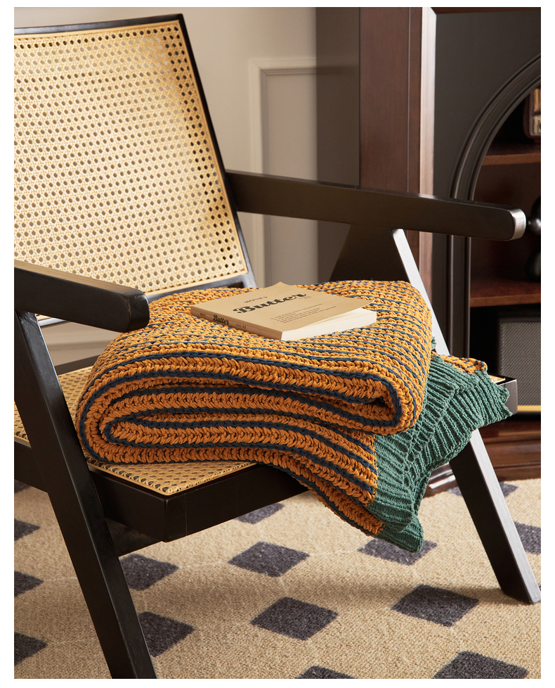 (总)暖绵绵家纺 2026新款几何编制温柔米色流苏针织毯-艾岚珍(本款券后/折后零售价不得低于330元),艾岚珍