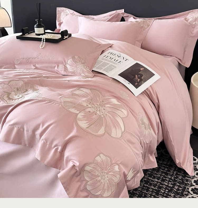 • 91家纺网 家纺一手货源 找家纺 (总)2026新款全棉长绒棉四件套刺绣高端轻奢床上用品-梦幻, 太妃咖, 茶白, 泡沫粉, 雾灰