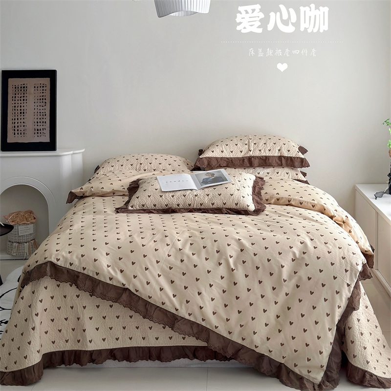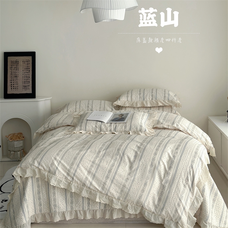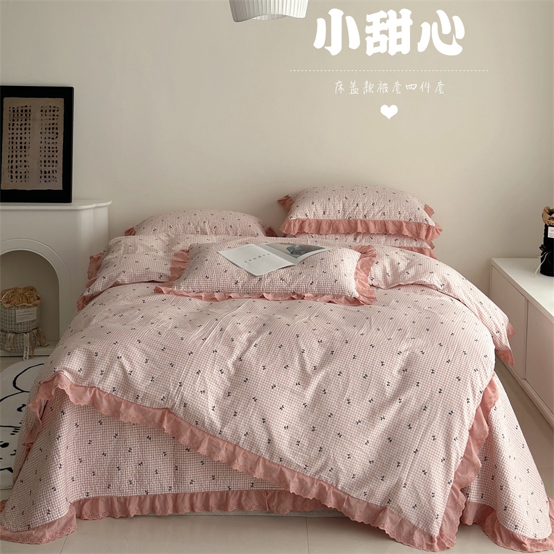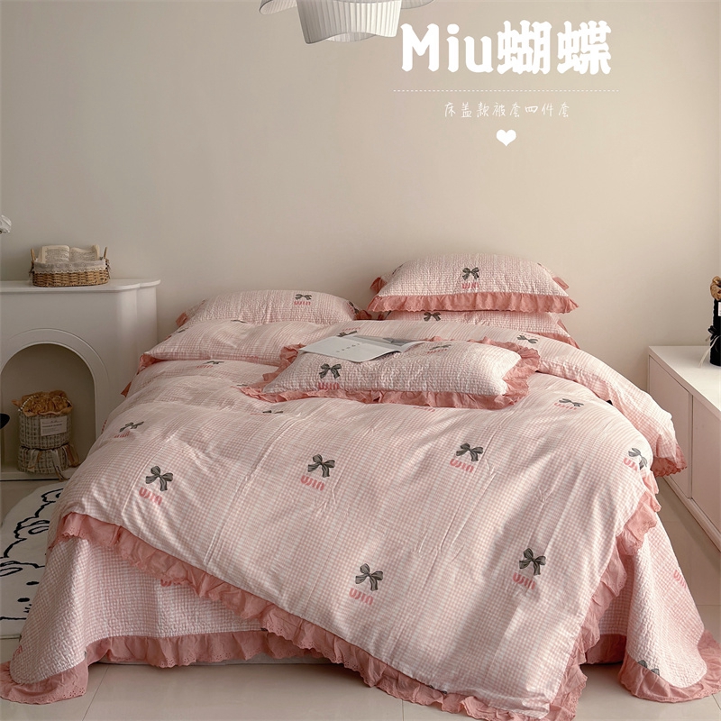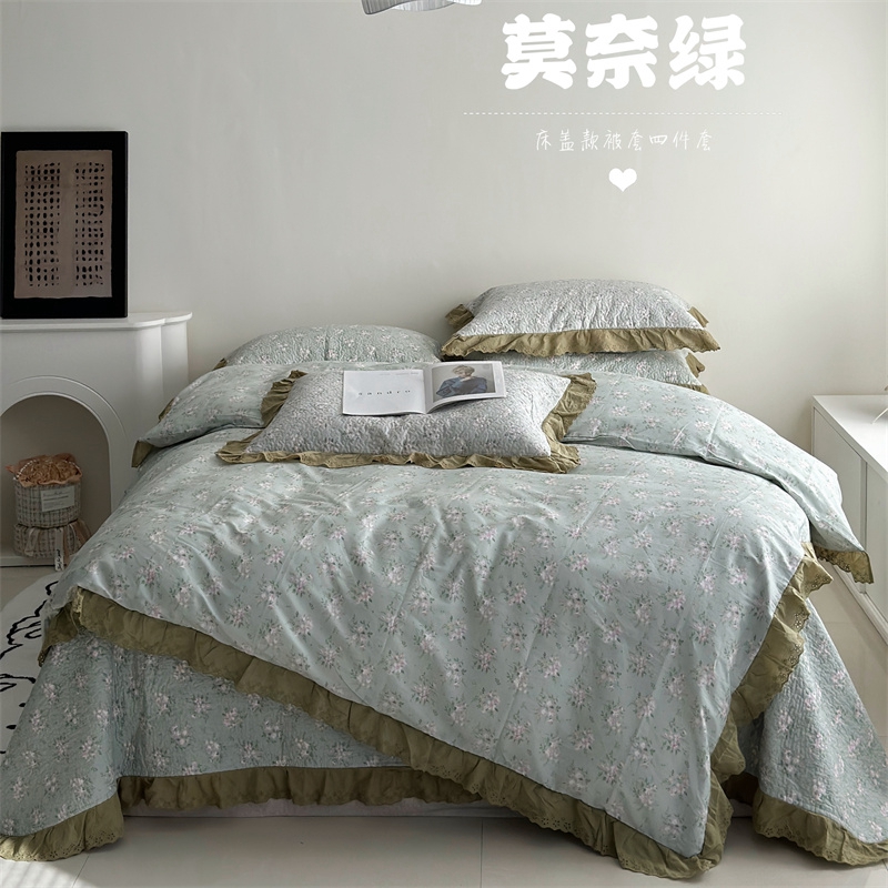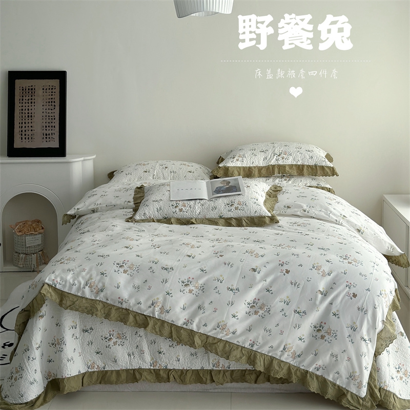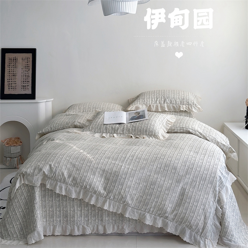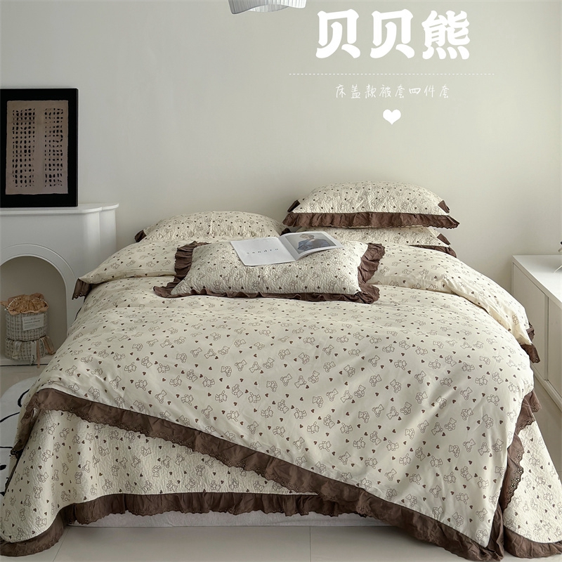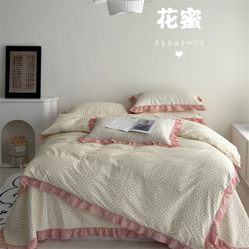 (总)佰织鑫家居 2025新款木耳边棉加绒床盖款四件套,梨花落,落了白
