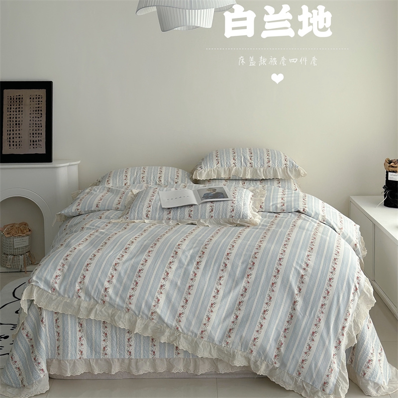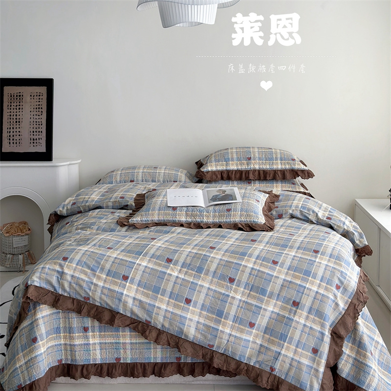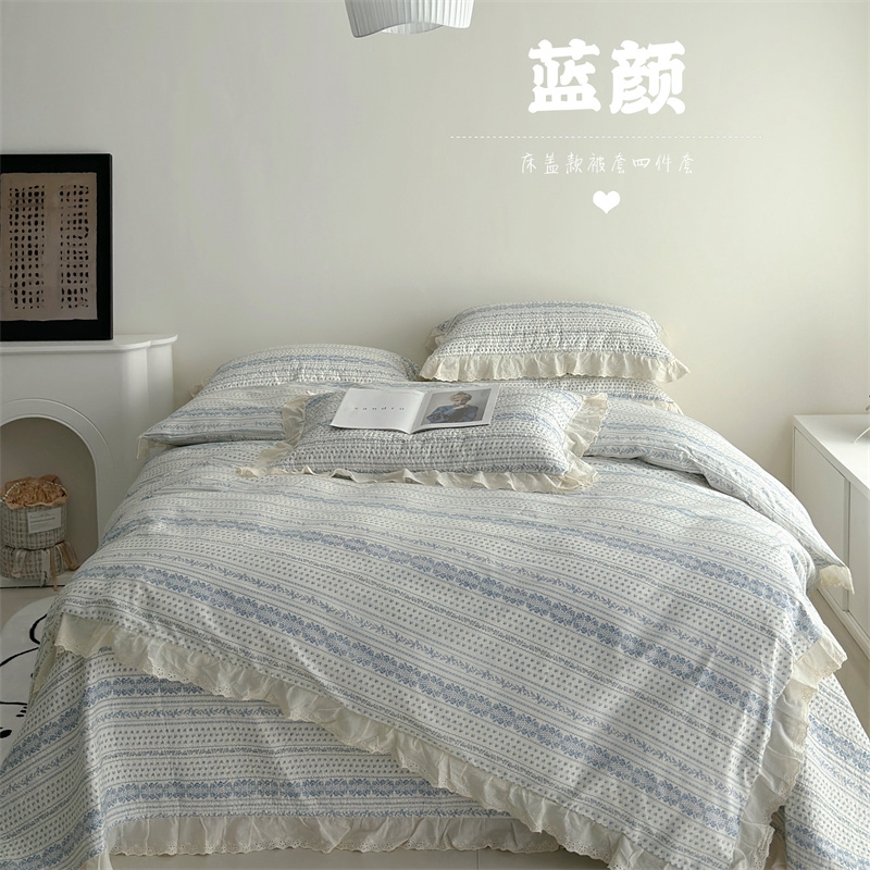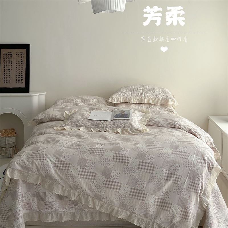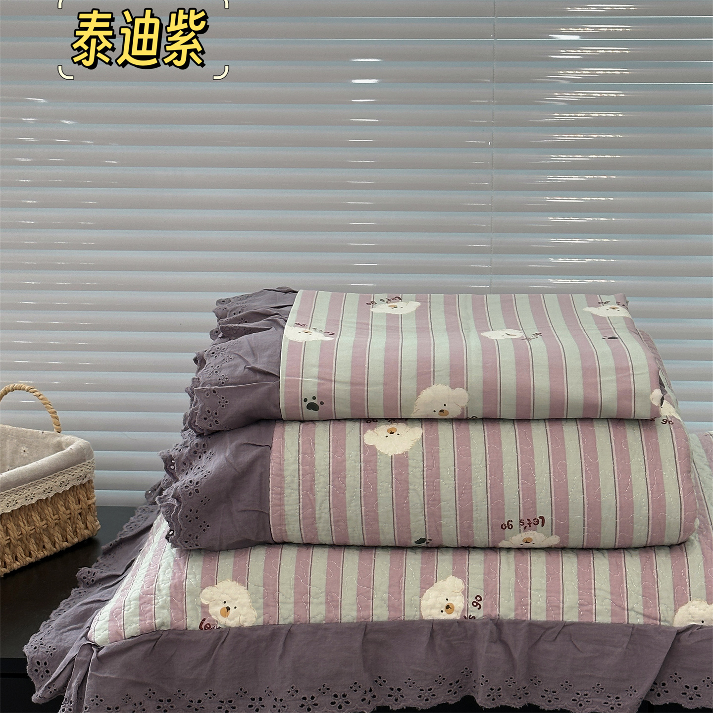 商品名称:佰织鑫家居 2025新款全棉法式砂洗棉花床盖款被套四件套泰迪紫