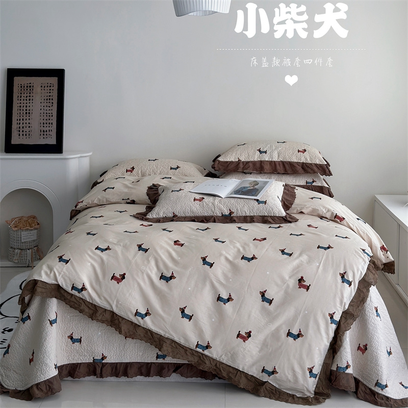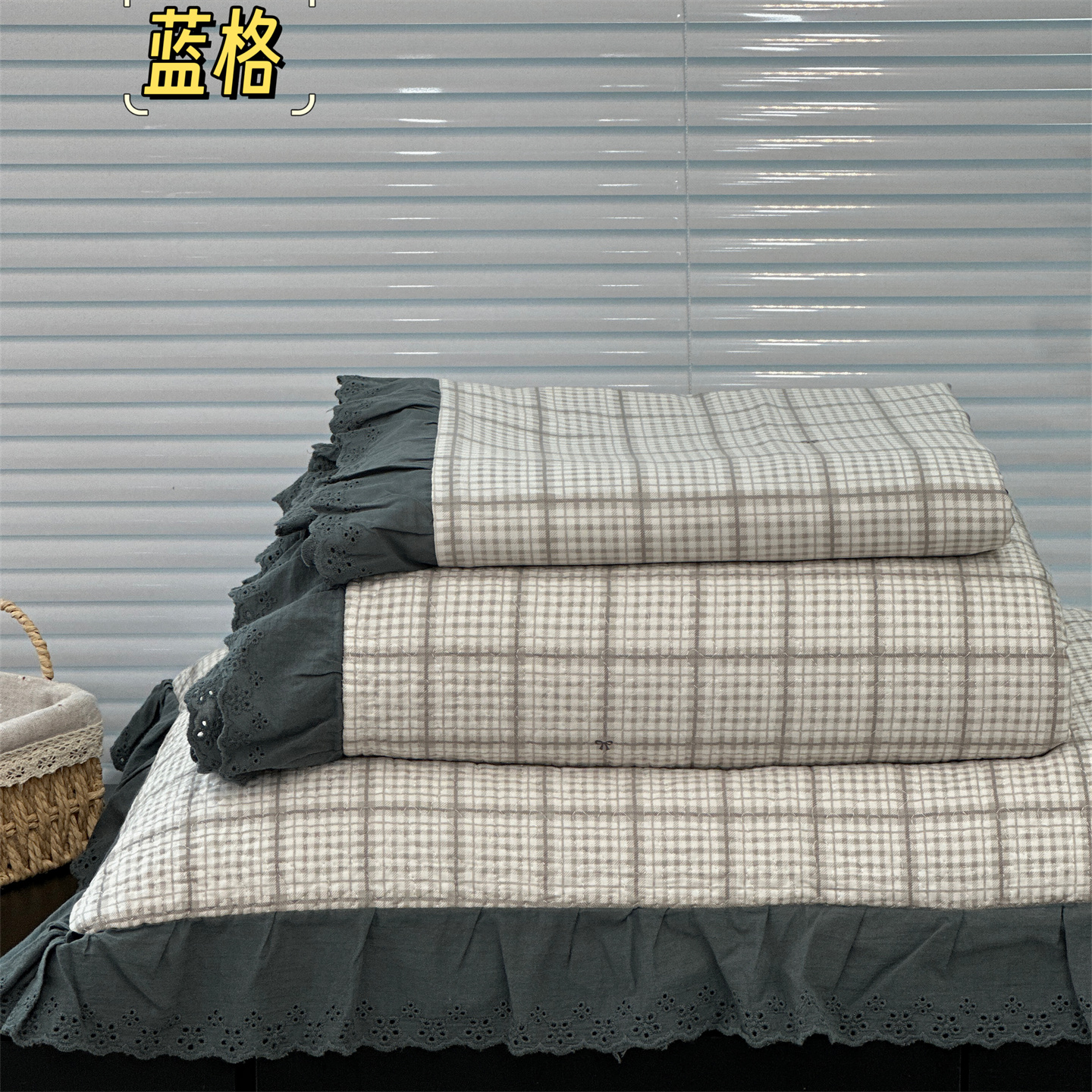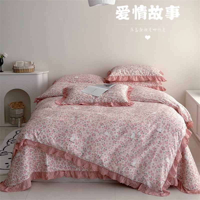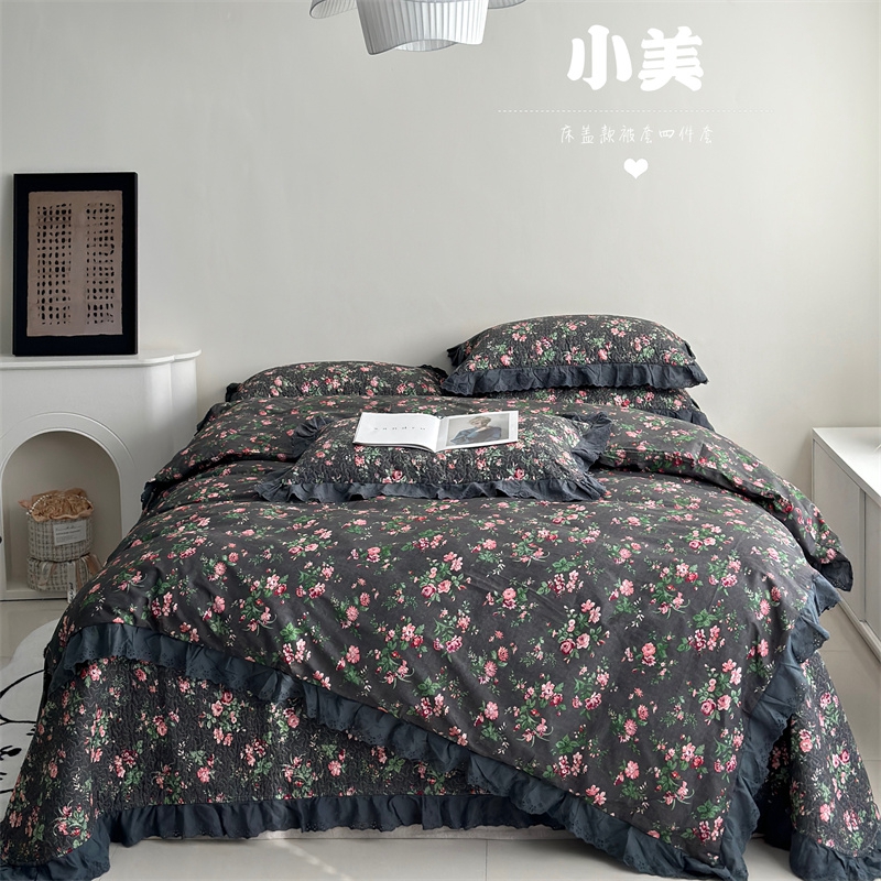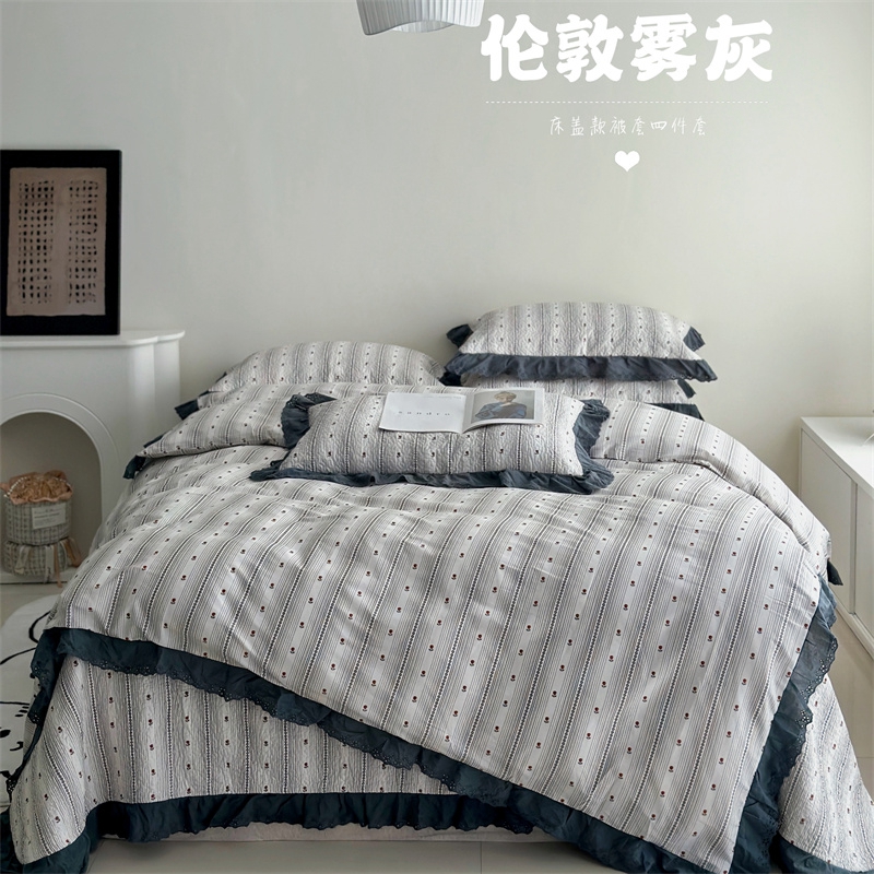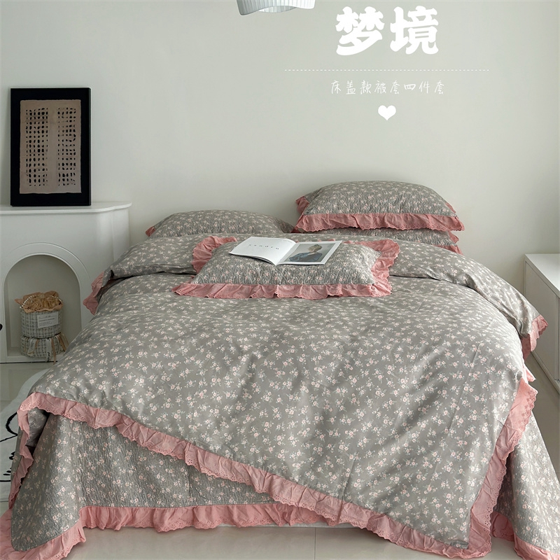 商品名称:佰织鑫家居 2025新款全棉法式砂洗棉花床盖款被套四件套泰迪紫