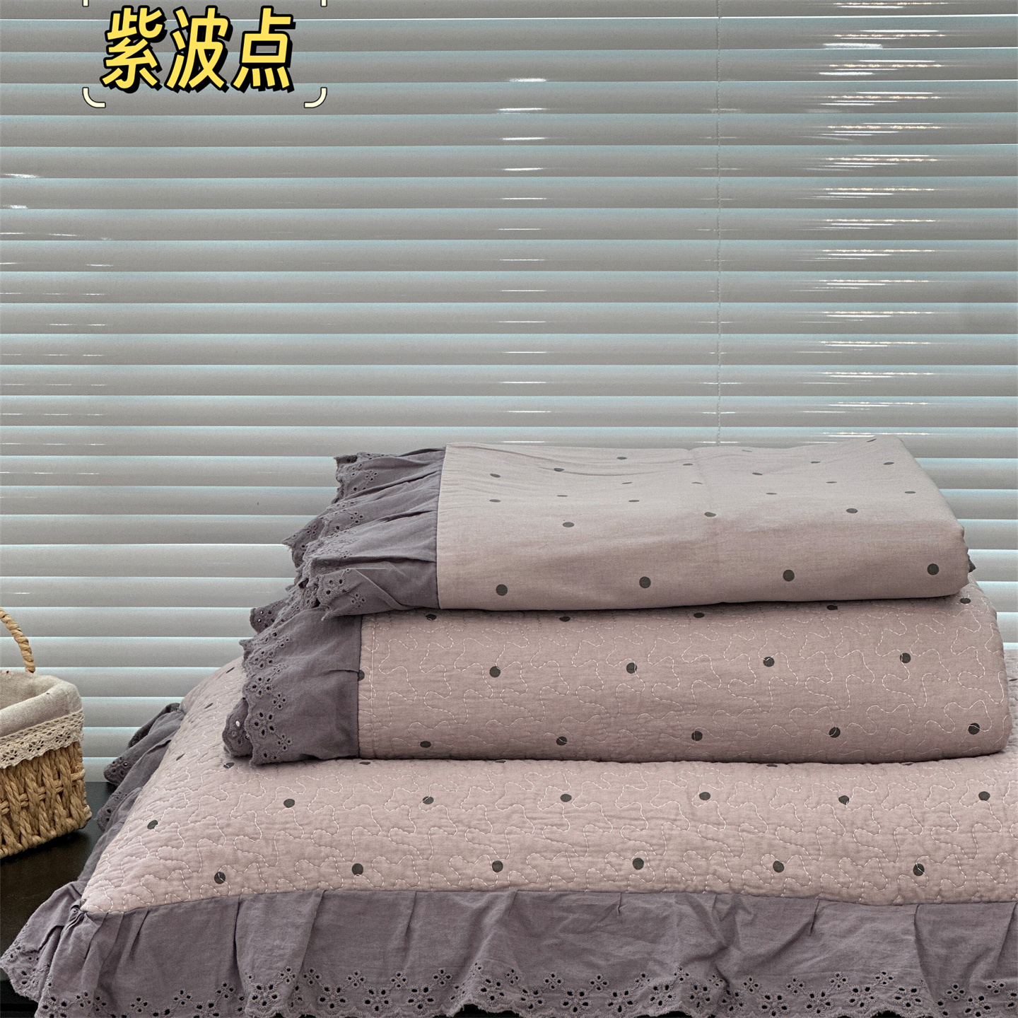 佰织鑫家居 2025新款全棉法式砂洗棉花床盖款被套四件套泰迪紫