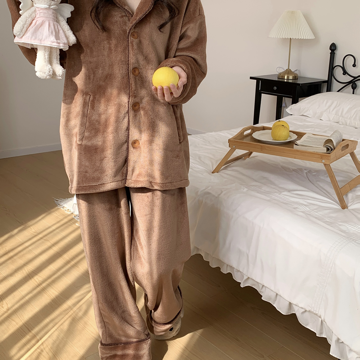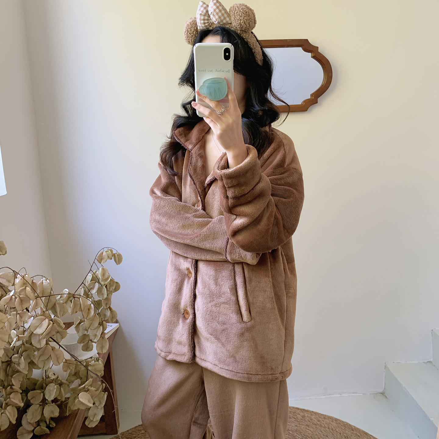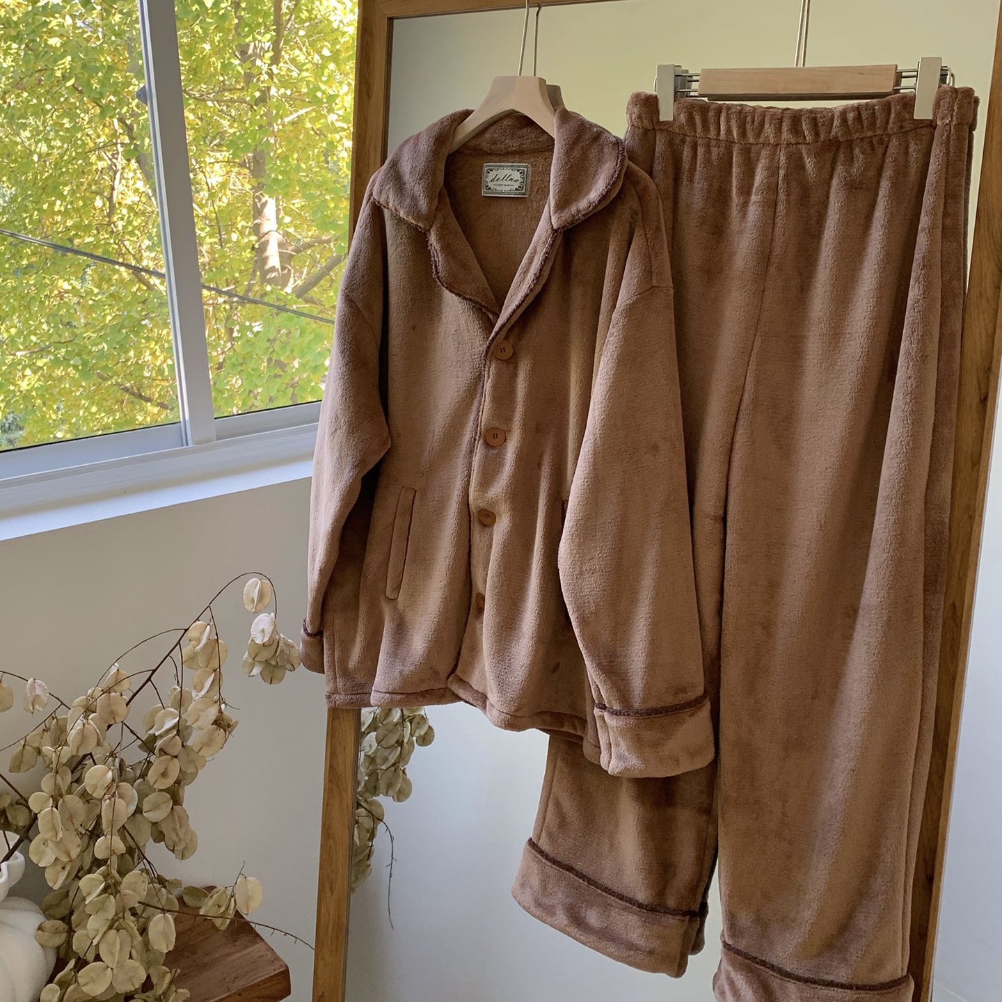 (总)多乐娜 2025新款出口日单高定款半边绒家居服重量高达1600g高级出口品质非市面普货(控价!请不要低于165元销售!!!!!),暖棕色,青奈色