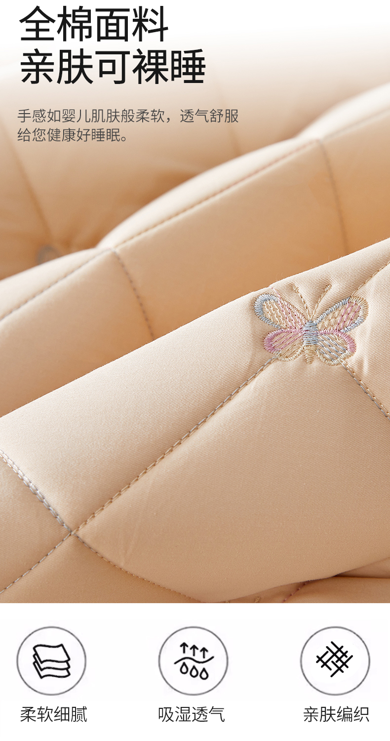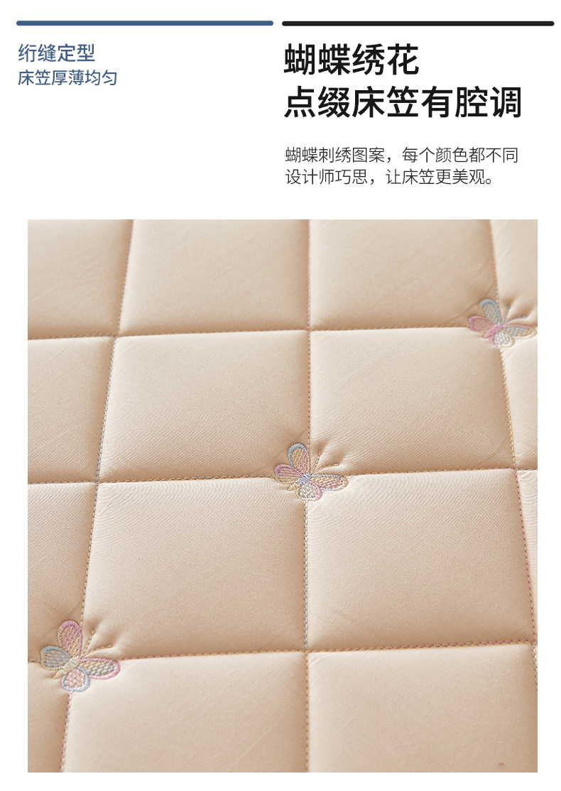 商品名称:红淳家纺 2025新款全棉刺绣蝴蝶款防水床笠单品床笠床笠单件 刺绣蝴蝶款-卡其