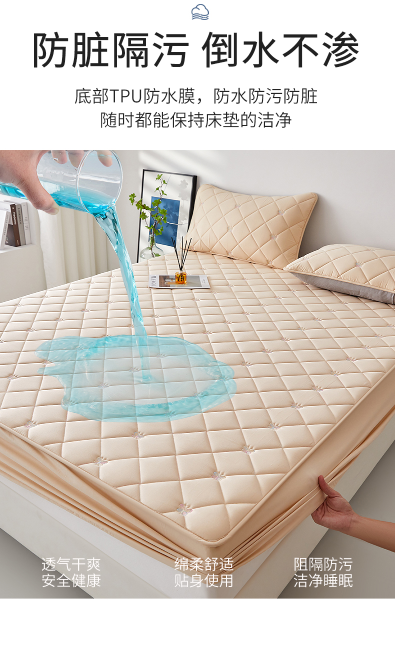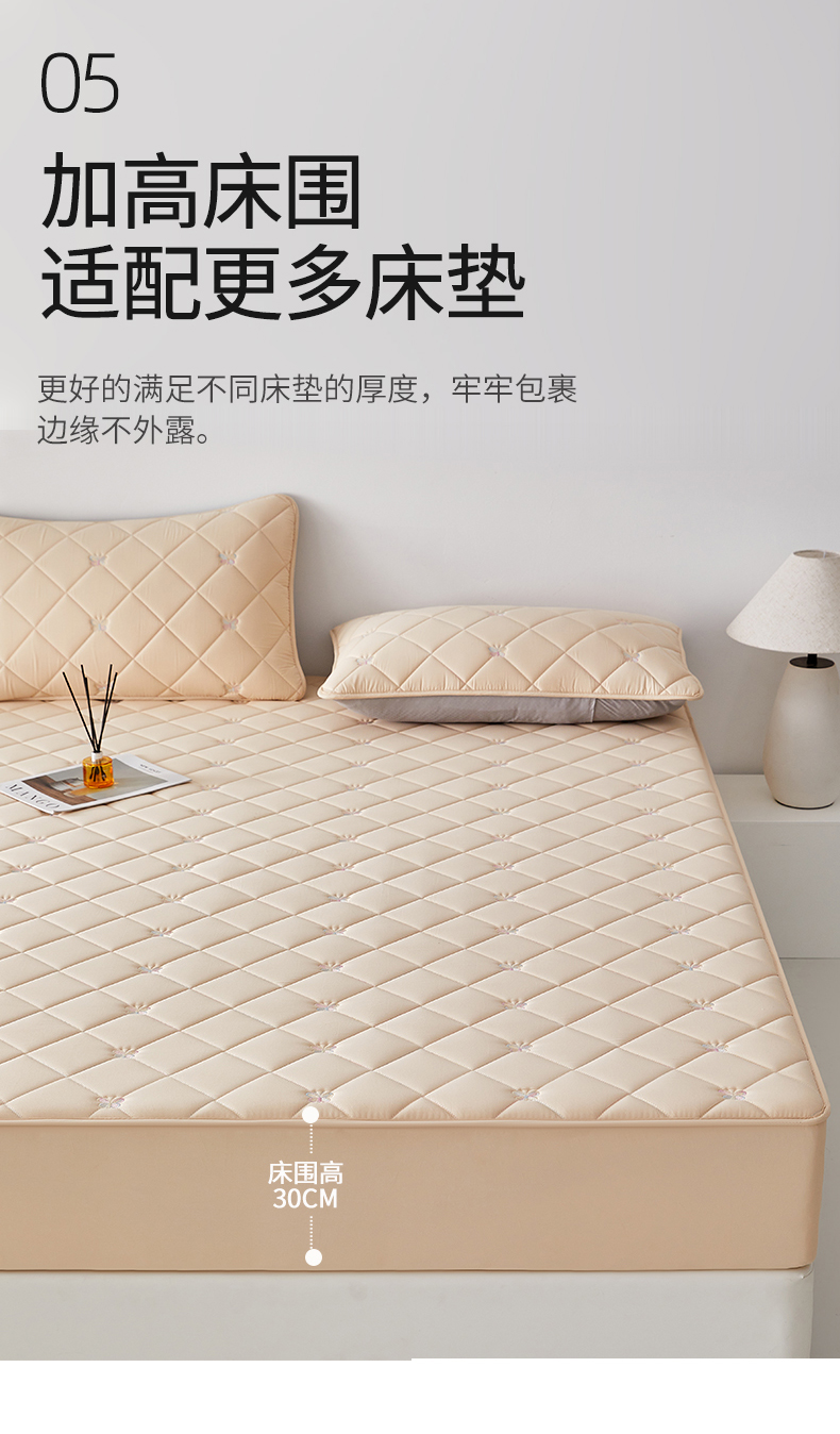 (总)红淳家纺 2025新款山茶花款防水夹棉床笠单品床笠床笠单件,山茶花-卡其,山茶花-浅灰,山茶花-深灰,山茶花-水绿,山茶花-奶白