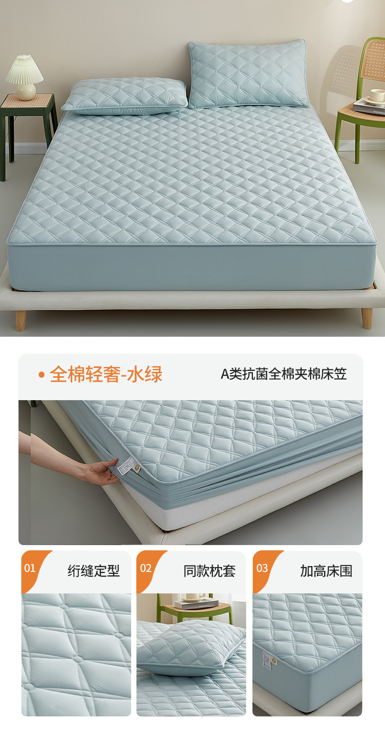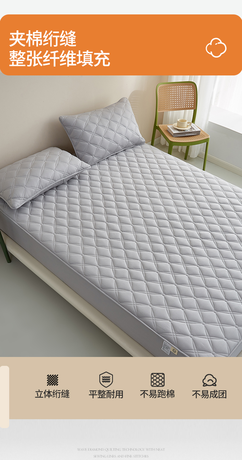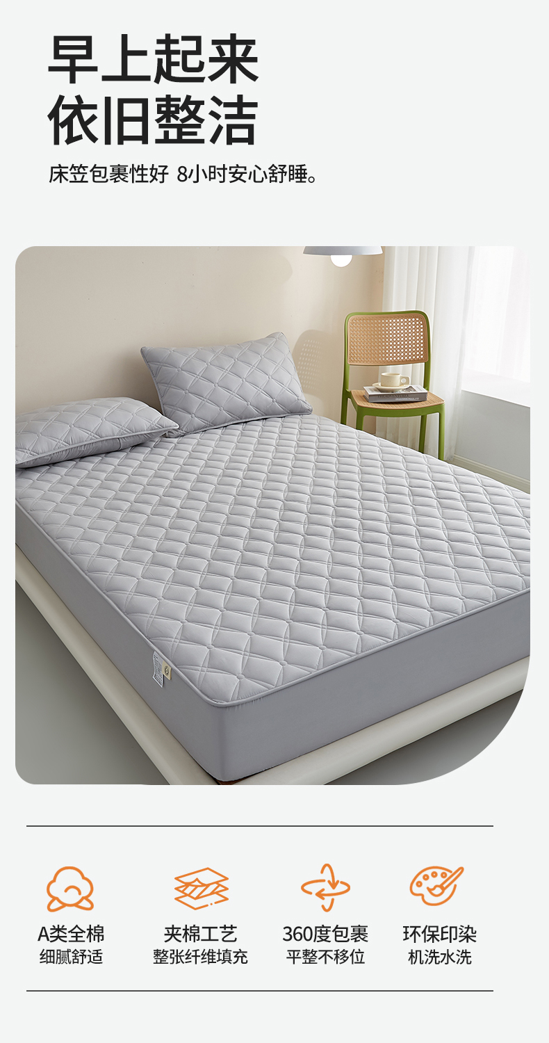 商品名称:红淳家纺 2025新款A类抗菌全棉夹棉轻奢款床笠单品床笠床笠单件 全棉轻奢-浅灰