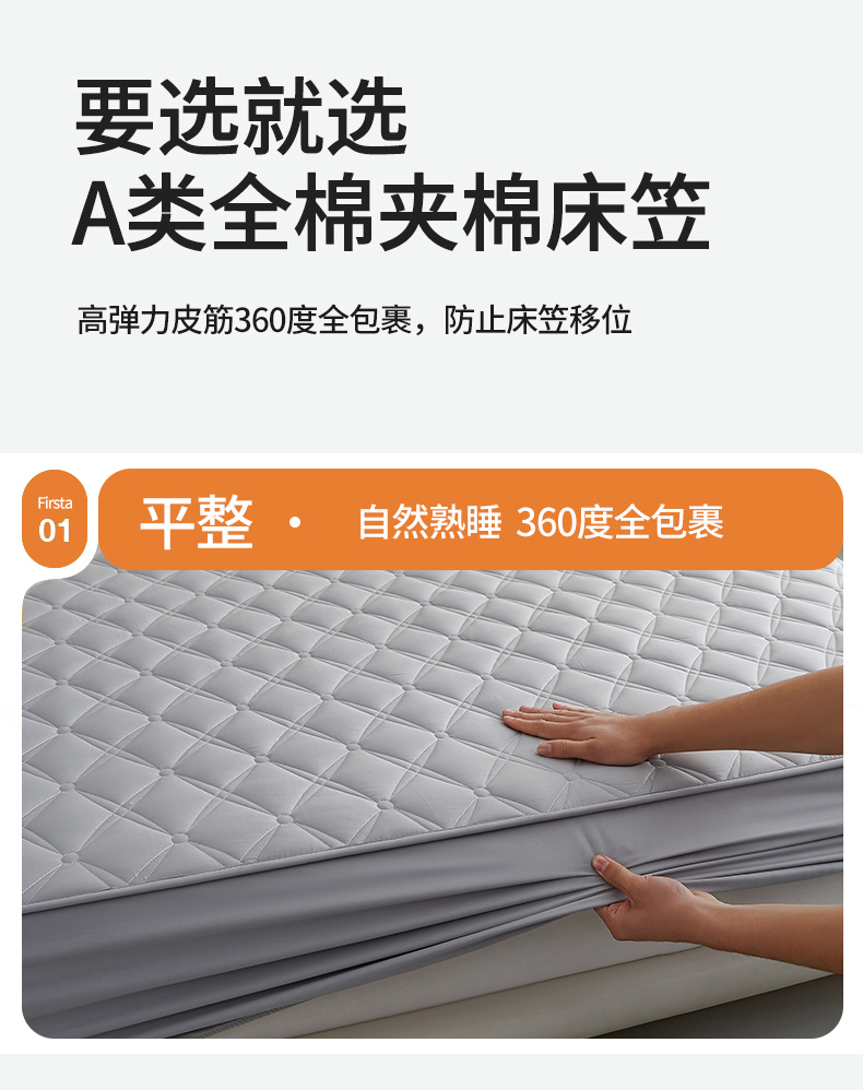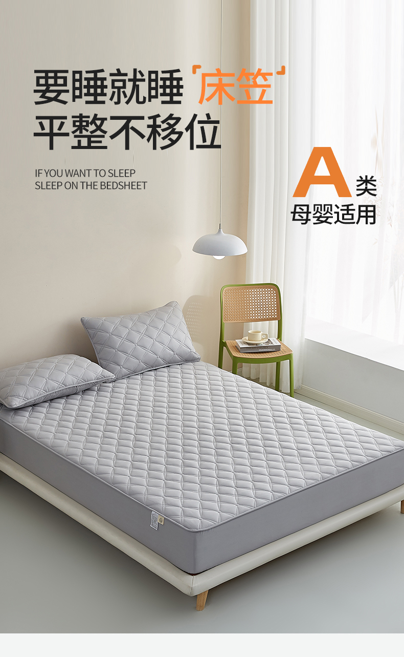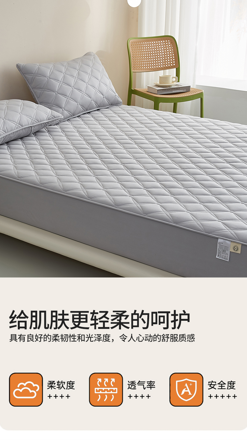 商品名称:红淳家纺 2025新款A类抗菌全棉夹棉轻奢款床笠单品床笠床笠单件 全棉轻奢-浅灰