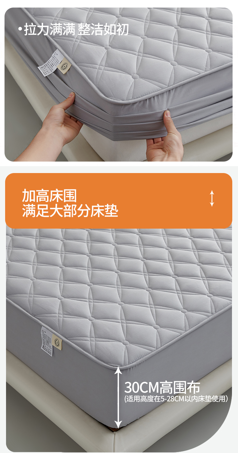红淳家纺 2025新款A类抗菌全棉夹棉轻奢款床笠单品床笠床笠单件 全棉轻奢-浅灰
