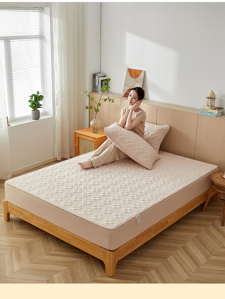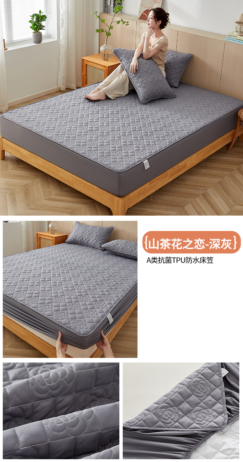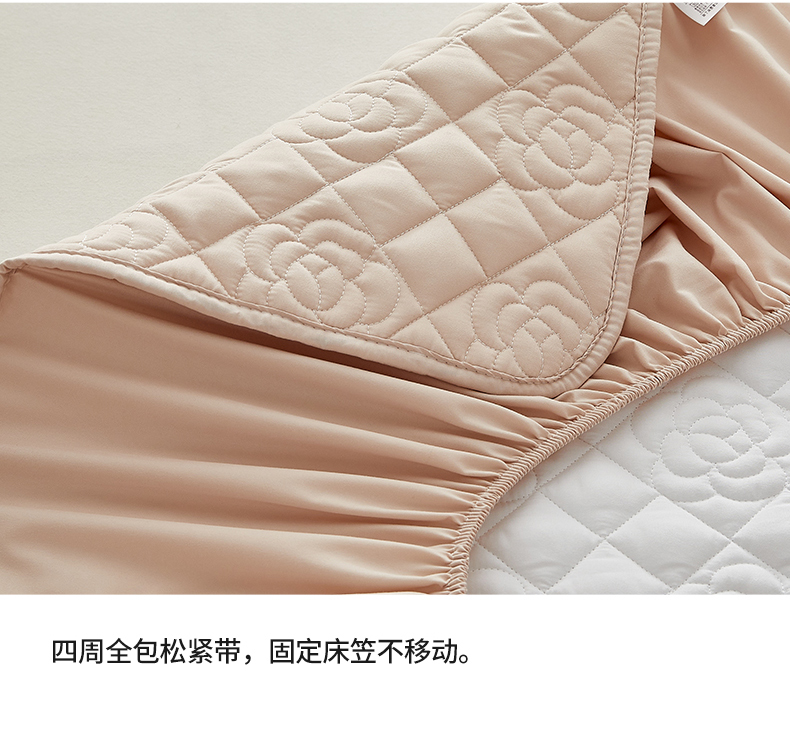 红淳家纺 2025新款山茶花款防水夹棉床笠单品床笠床笠单件 山茶花-卡其