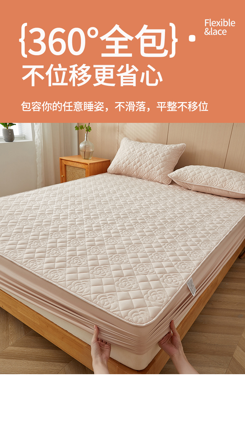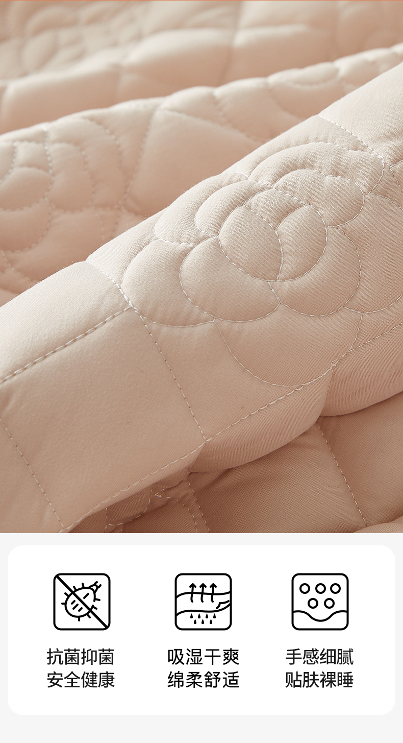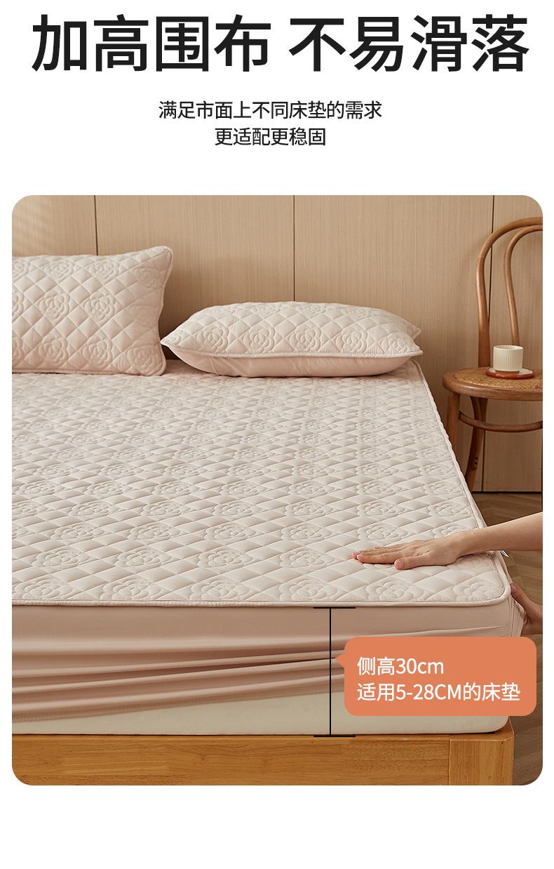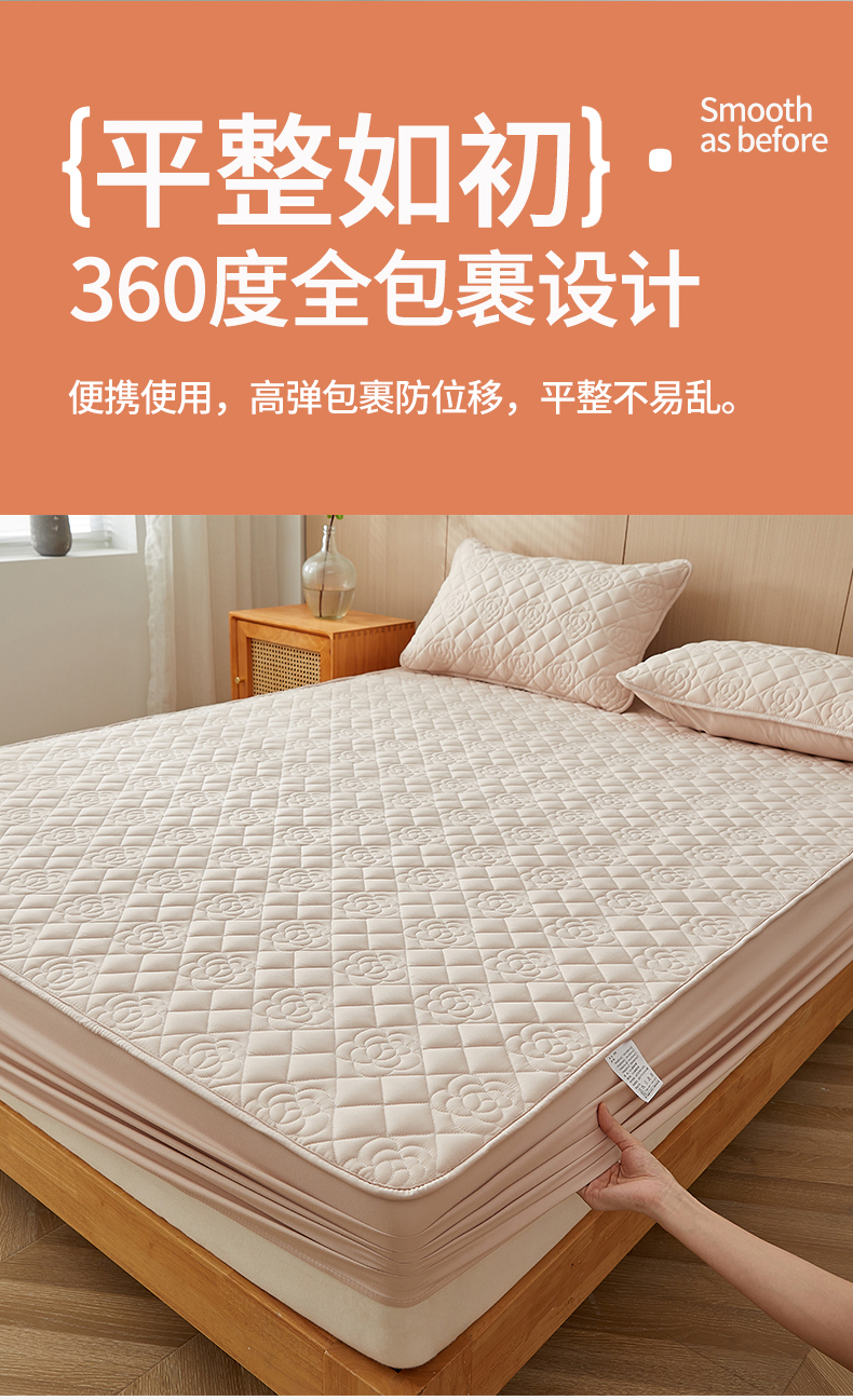 商品名称:红淳家纺 2025新款山茶花款防水夹棉床笠单品床笠床笠单件 山茶花-卡其