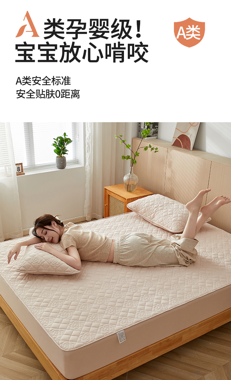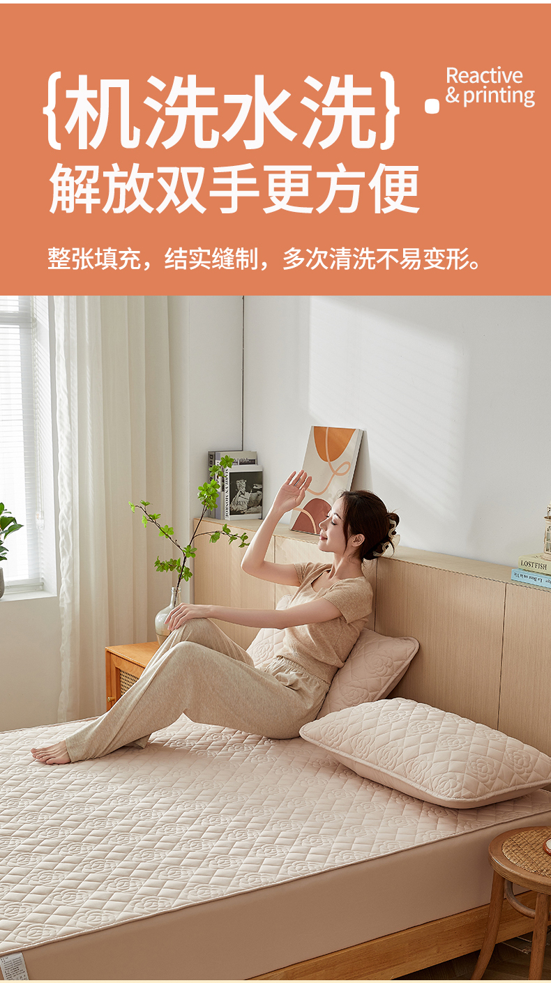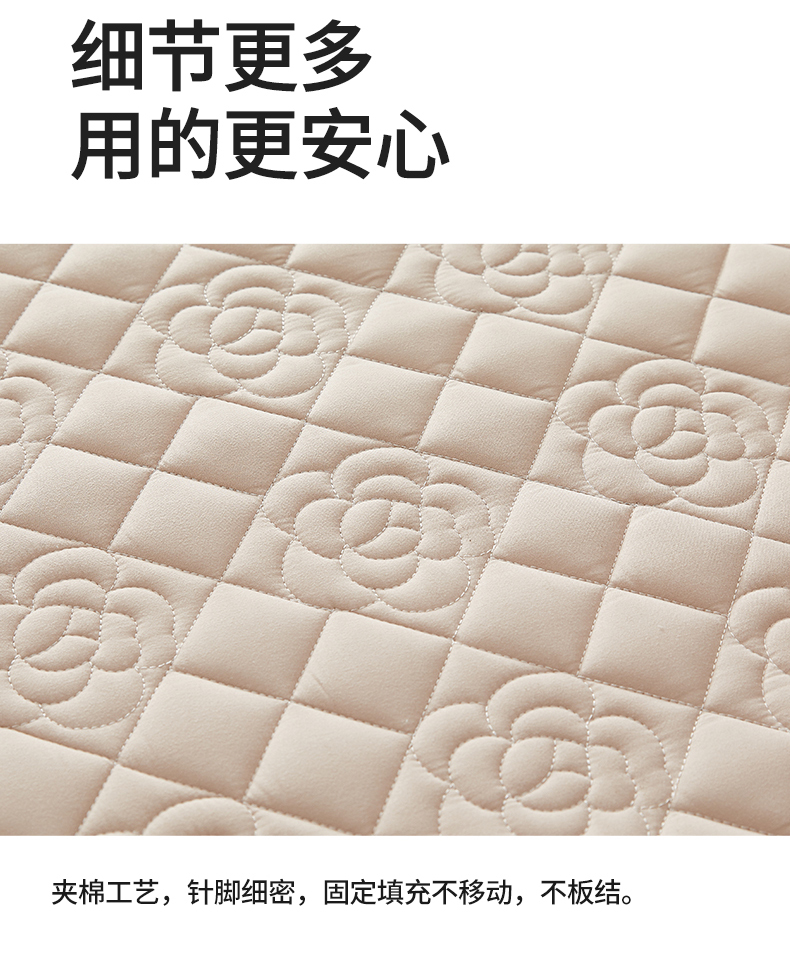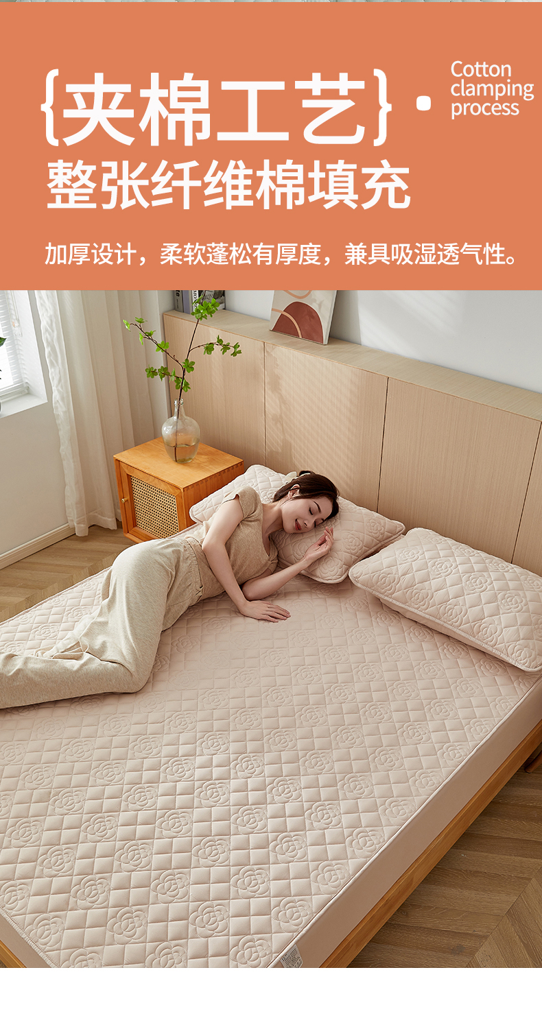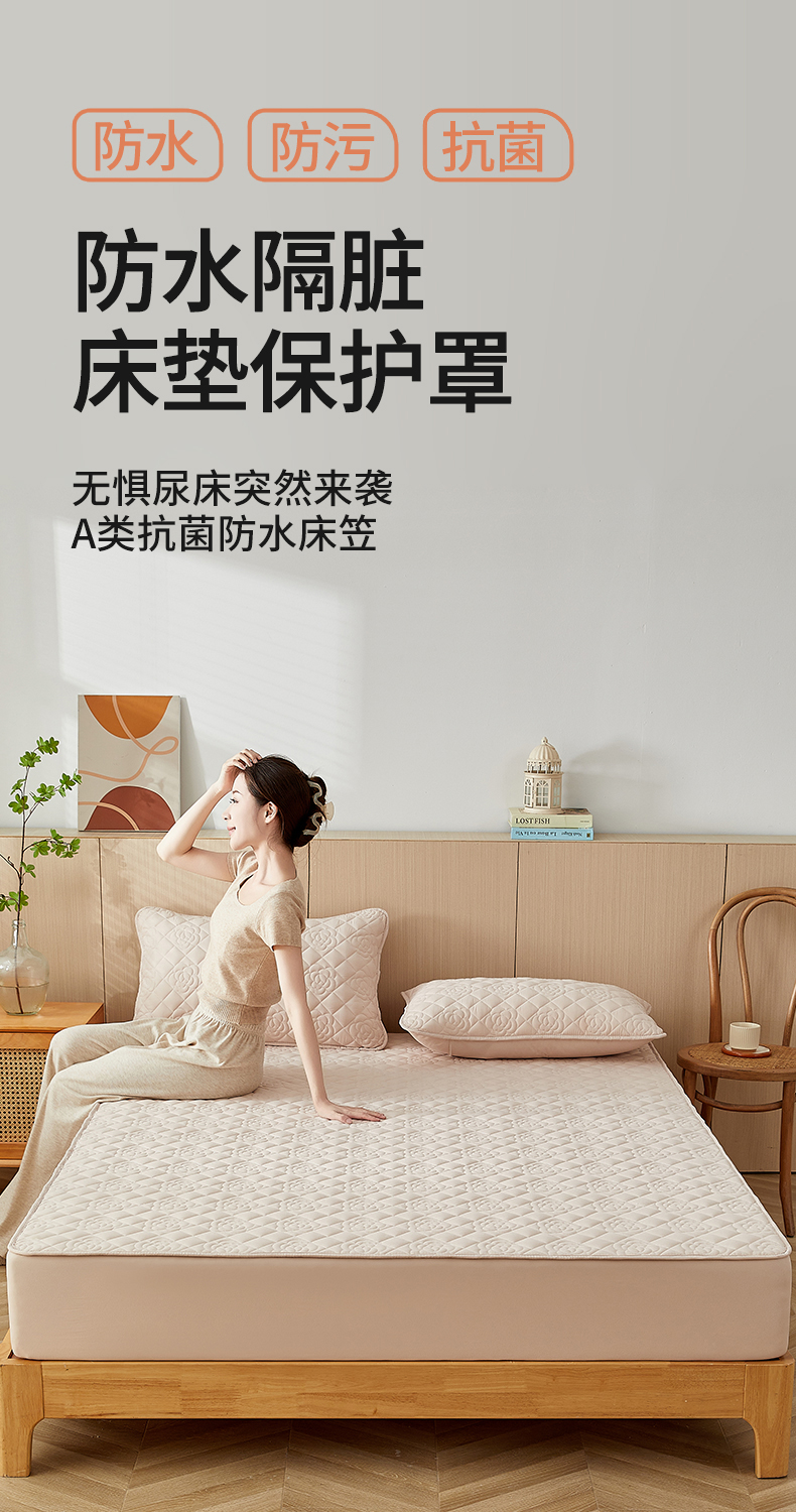 商品名称:红淳家纺 2025新款山茶花款防水夹棉床笠单品床笠床笠单件 山茶花-卡其