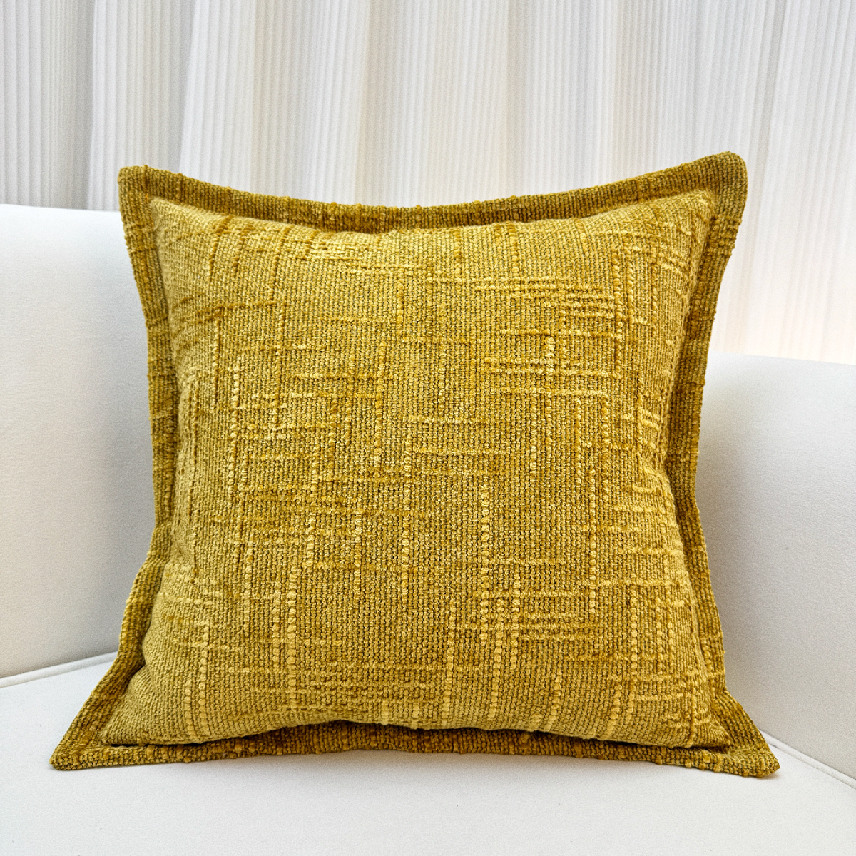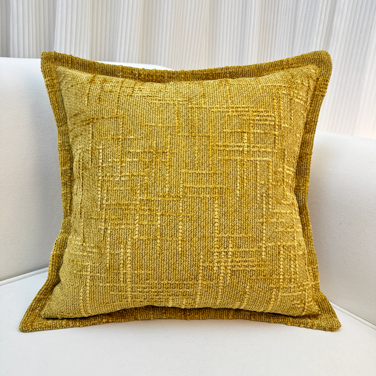 爱家居 2025新款跨境亚马逊加厚双面雪尼尔宽边枕套美式压边抱枕客厅纯色靠垫 宽边雪尼尔—暖黄